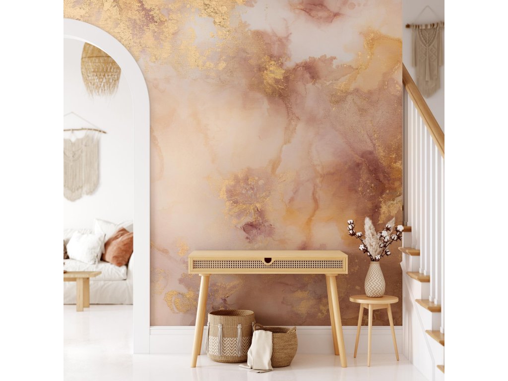 Tapety se zlatými, stříbrnými a měděnými prvky jsou vytvořeny vytištěním textury příslušnou barvou do materiálu.