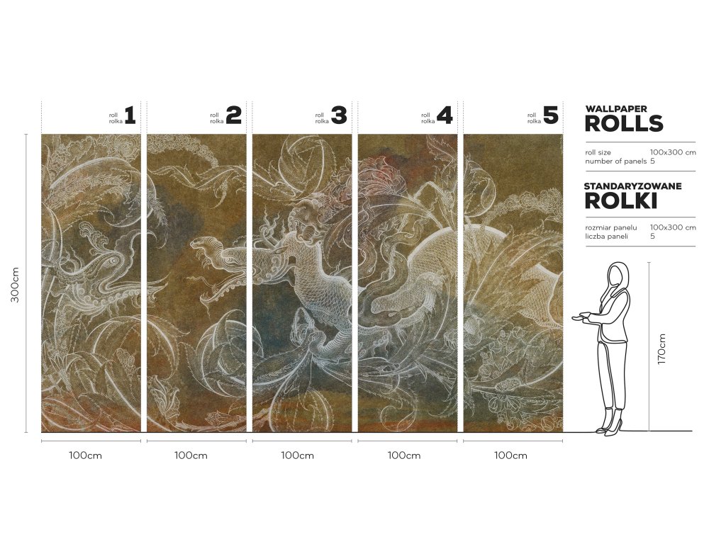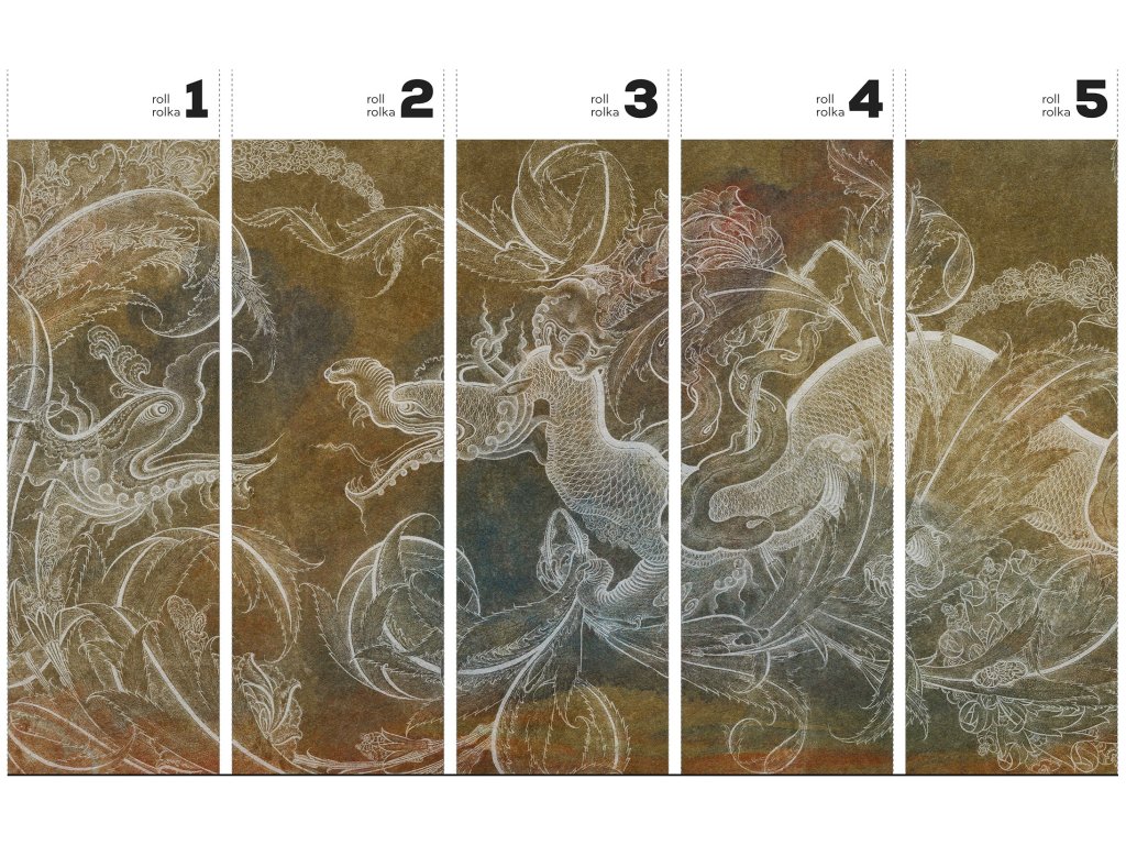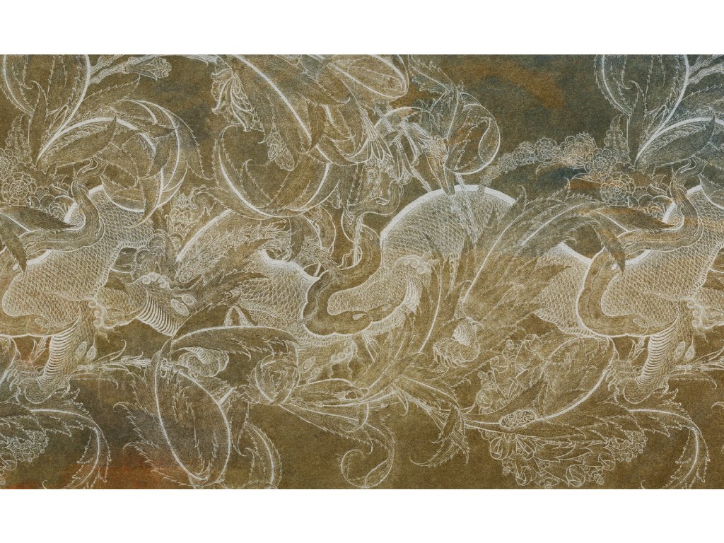 Tapety se zlatými, stříbrnými a měděnými prvky jsou vytvořeny vytištěním textury příslušnou barvou do materiálu.