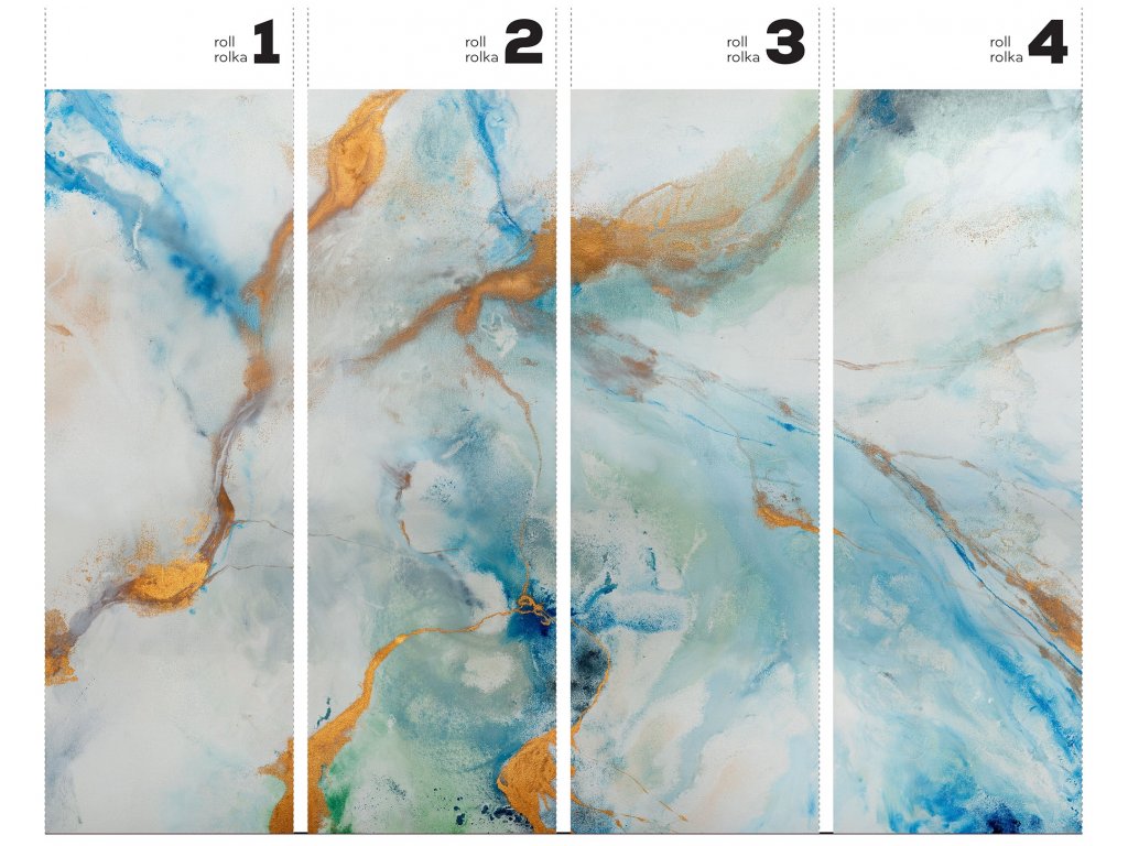 Tapety se zlatými, stříbrnými a měděnými prvky jsou vytvořeny vytištěním textury příslušnou barvou do materiálu.