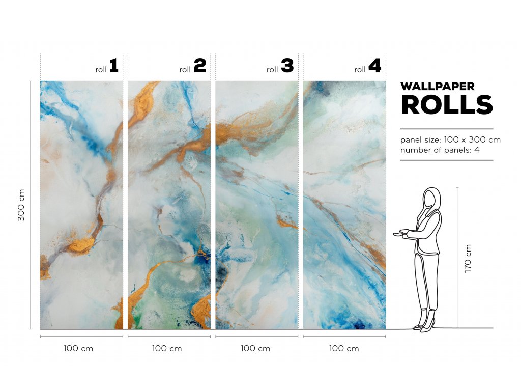 Tapeta je připravena na tupý spoj. Aplikace je rychlá, jednoduchá, s lepidlem na tapety, lepidlo se nanáší pouze na zeď. Lepidlo není součástí balení.