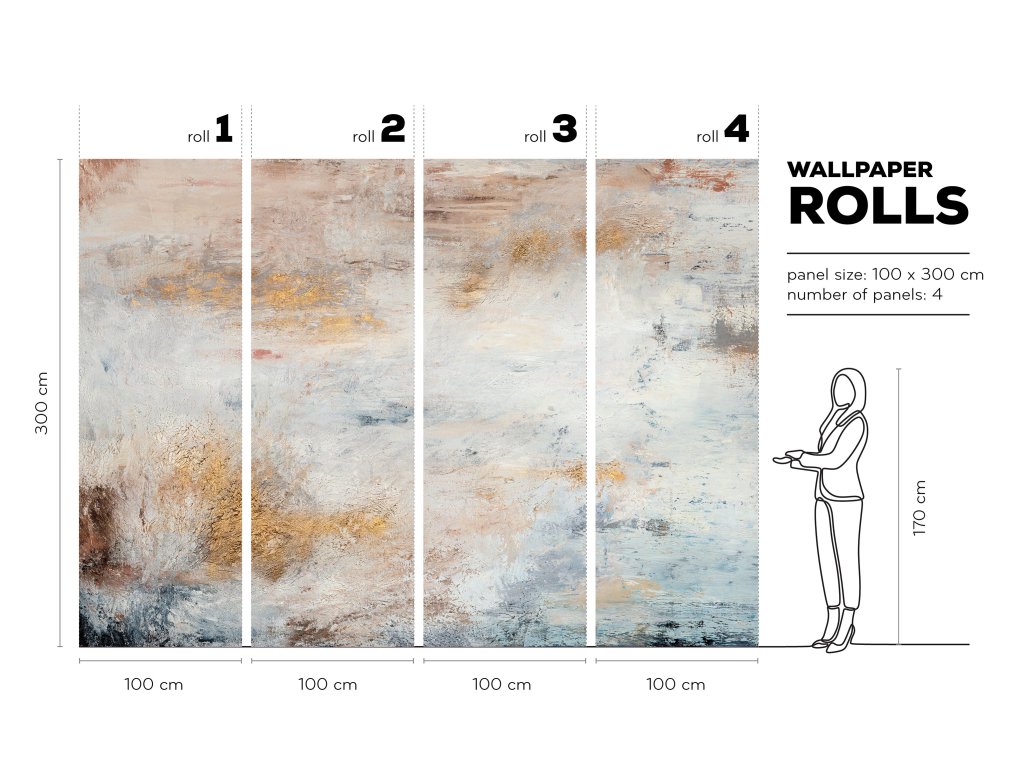 Tapeta je připravena na tupý spoj. Aplikace je rychlá, jednoduchá, s lepidlem na tapety, lepidlo se nanáší pouze na zeď. Lepidlo není součástí balení.