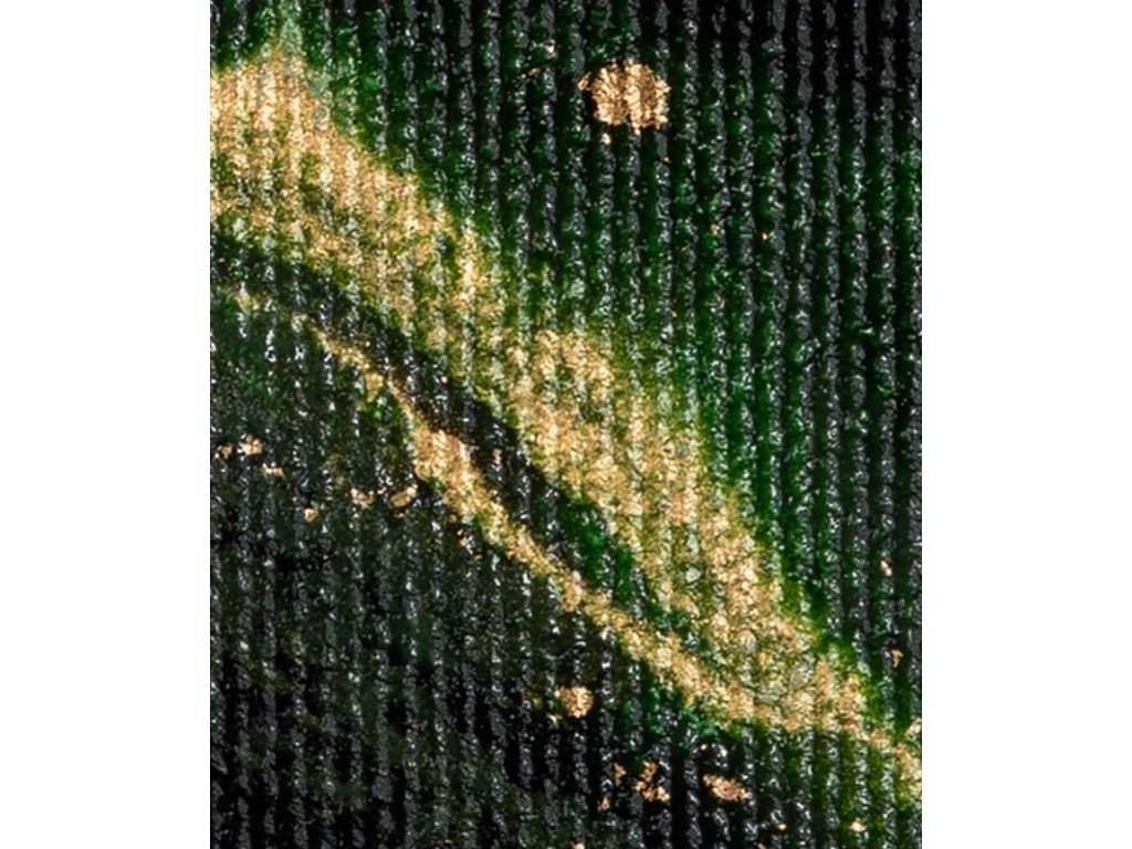 Tapety se zlatými, stříbrnými a měděnými prvky jsou vytvořeny vytištěním textury příslušnou barvou do materiálu.