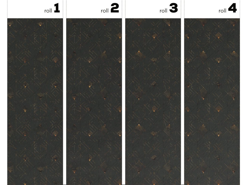 Tapety se zlatými, stříbrnými a měděnými prvky jsou vytvořeny vytištěním textury příslušnou barvou do materiálu.