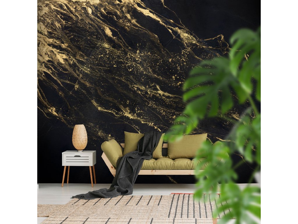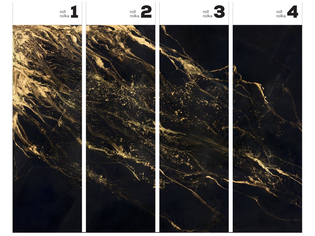 Tapety se zlatými, stříbrnými a měděnými prvky jsou vytvořeny vytištěním textury příslušnou barvou do materiálu.