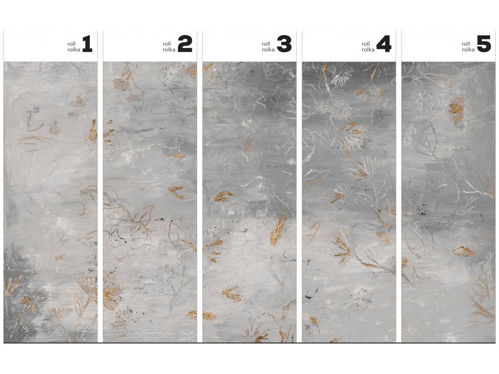 Tapety se zlatými, stříbrnými a měděnými prvky jsou vytvořeny vytištěním textury příslušnou barvou do materiálu.