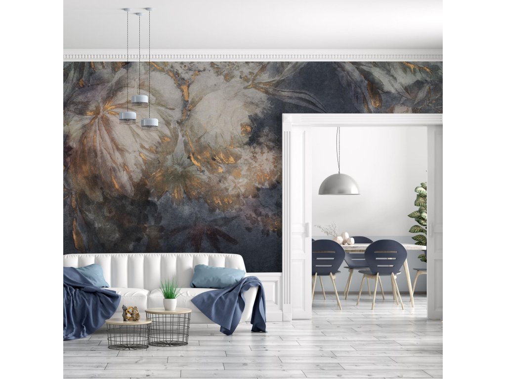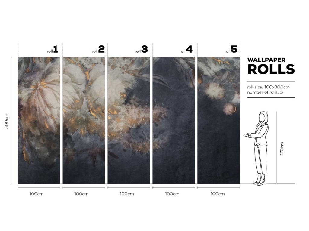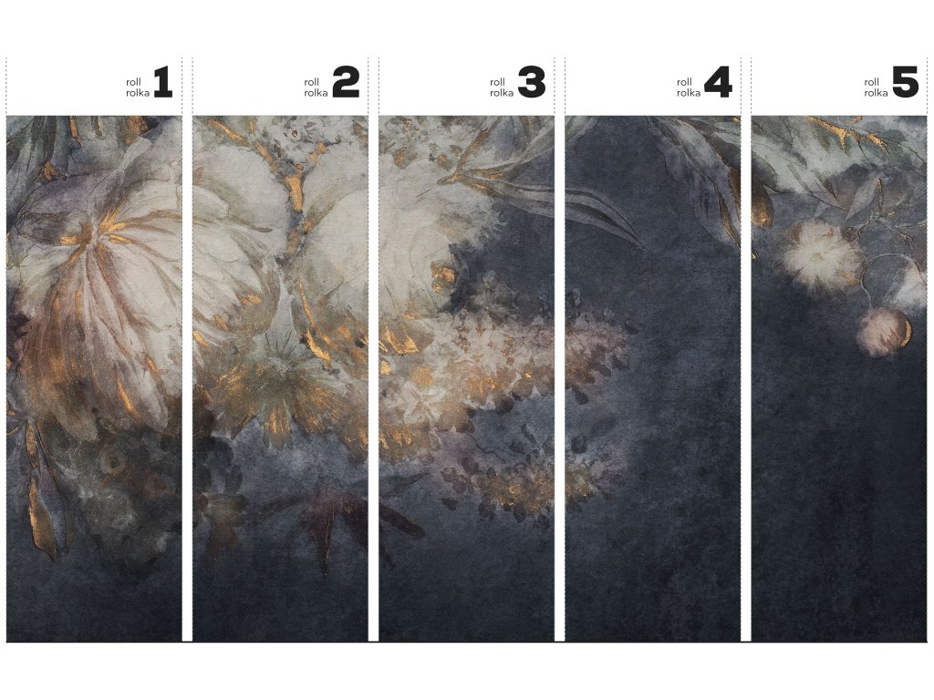 Tapety se zlatými, stříbrnými a měděnými prvky jsou vytvořeny vytištěním textury příslušnou barvou do materiálu.