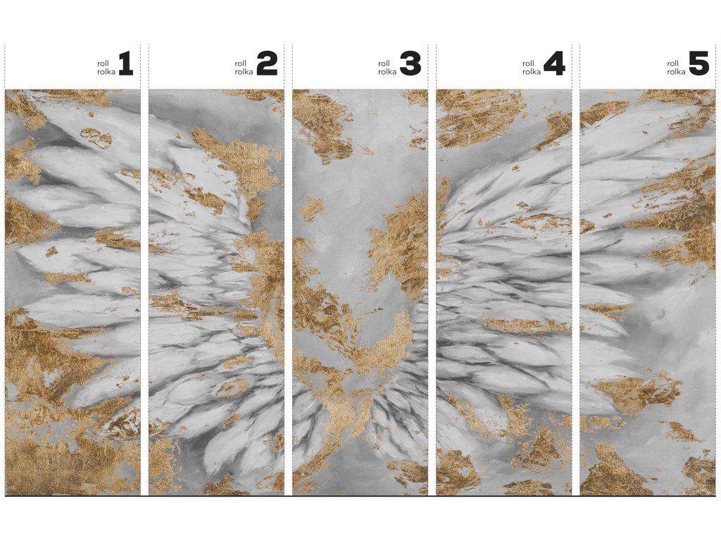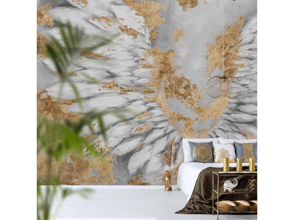 Tapety se zlatými, stříbrnými a měděnými prvky jsou vytvořeny vytištěním textury příslušnou barvou do materiálu.