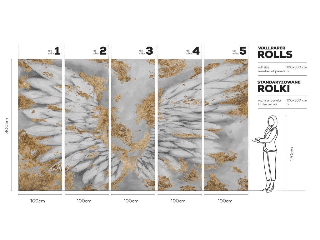 Tapety se zlatými, stříbrnými a měděnými prvky jsou vytvořeny vytištěním textury příslušnou barvou do materiálu.