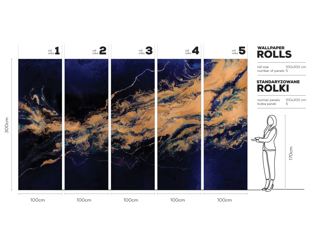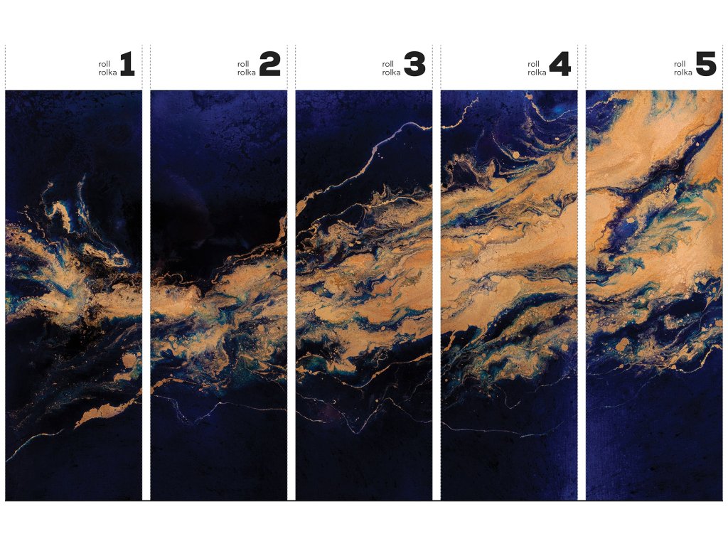 Tapety se zlatými, stříbrnými a měděnými prvky jsou vytvořeny vytištěním textury příslušnou barvou do materiálu.