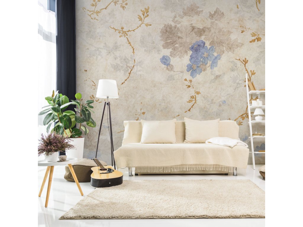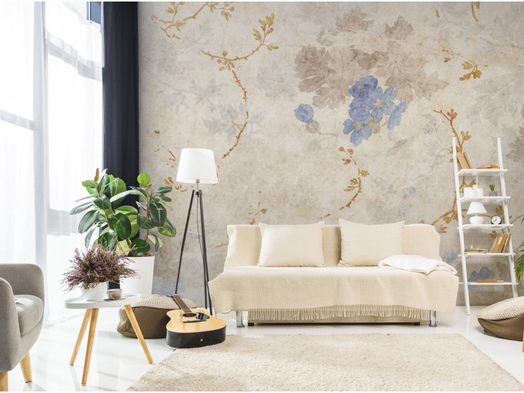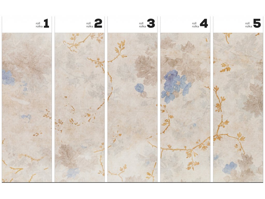Tapety se zlatými, stříbrnými a měděnými prvky jsou vytvořeny vytištěním textury příslušnou barvou do materiálu.