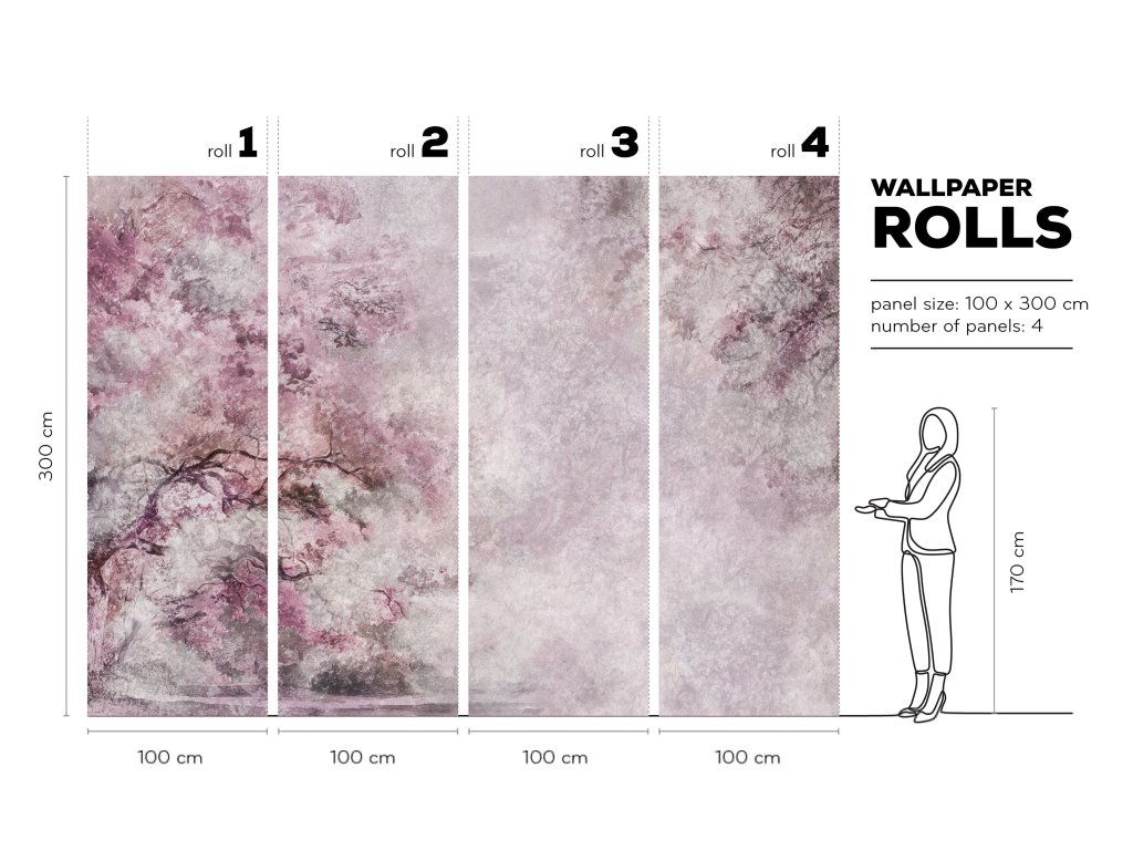 Tapeta je připravena na tupý spoj. Aplikace je rychlá, jednoduchá, s lepidlem na tapety, lepidlo se nanáší pouze na zeď. Lepidlo není součástí balení.