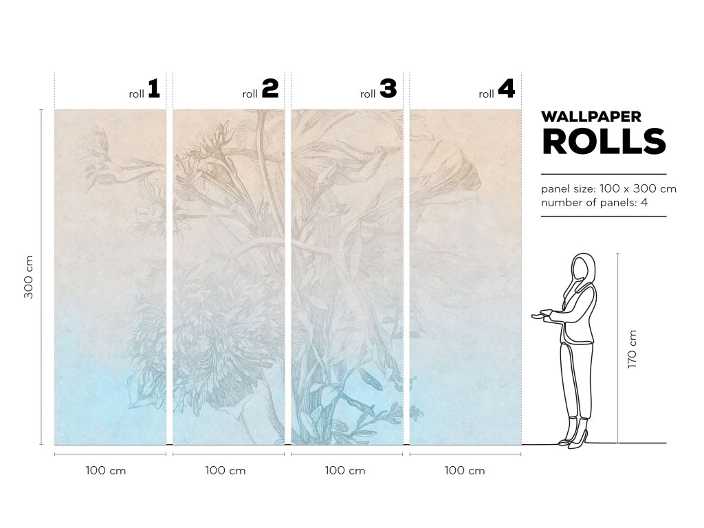 Tapeta je připravena na tupý spoj. Aplikace je rychlá, jednoduchá, s lepidlem na tapety, lepidlo se nanáší pouze na zeď. Lepidlo není součástí balení.