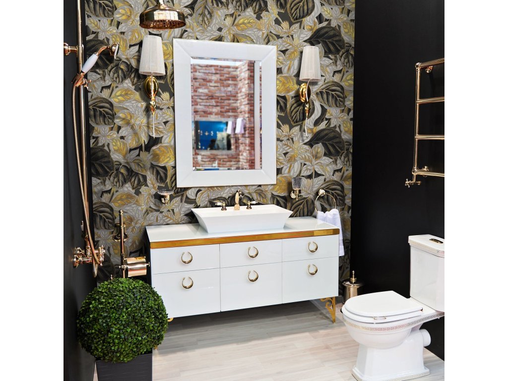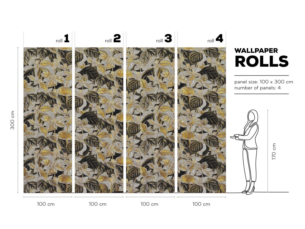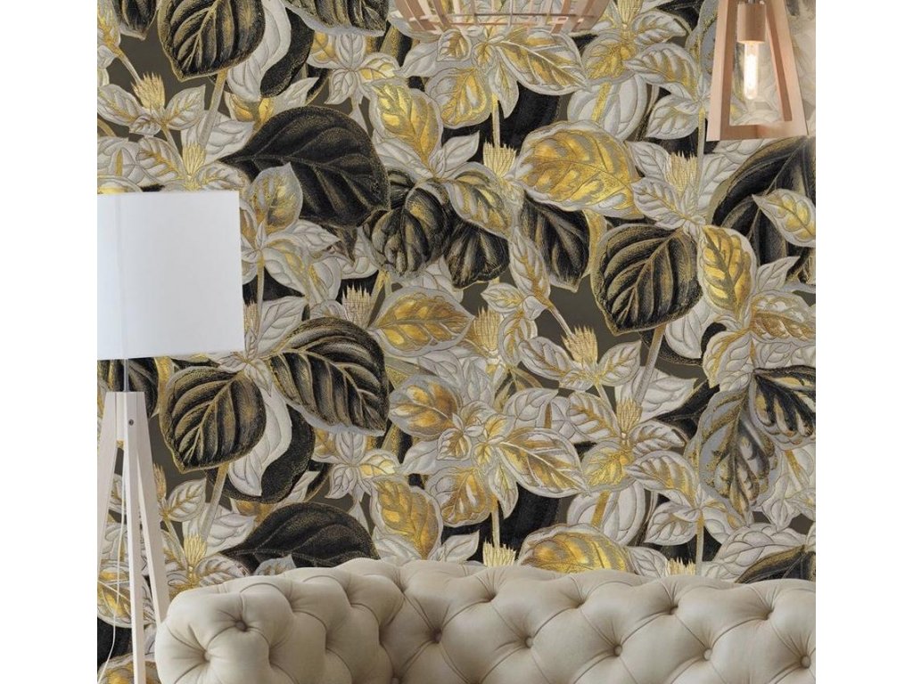 Tapety se zlatými, stříbrnými a měděnými prvky jsou vytvořeny vytištěním textury příslušnou barvou do materiálu.