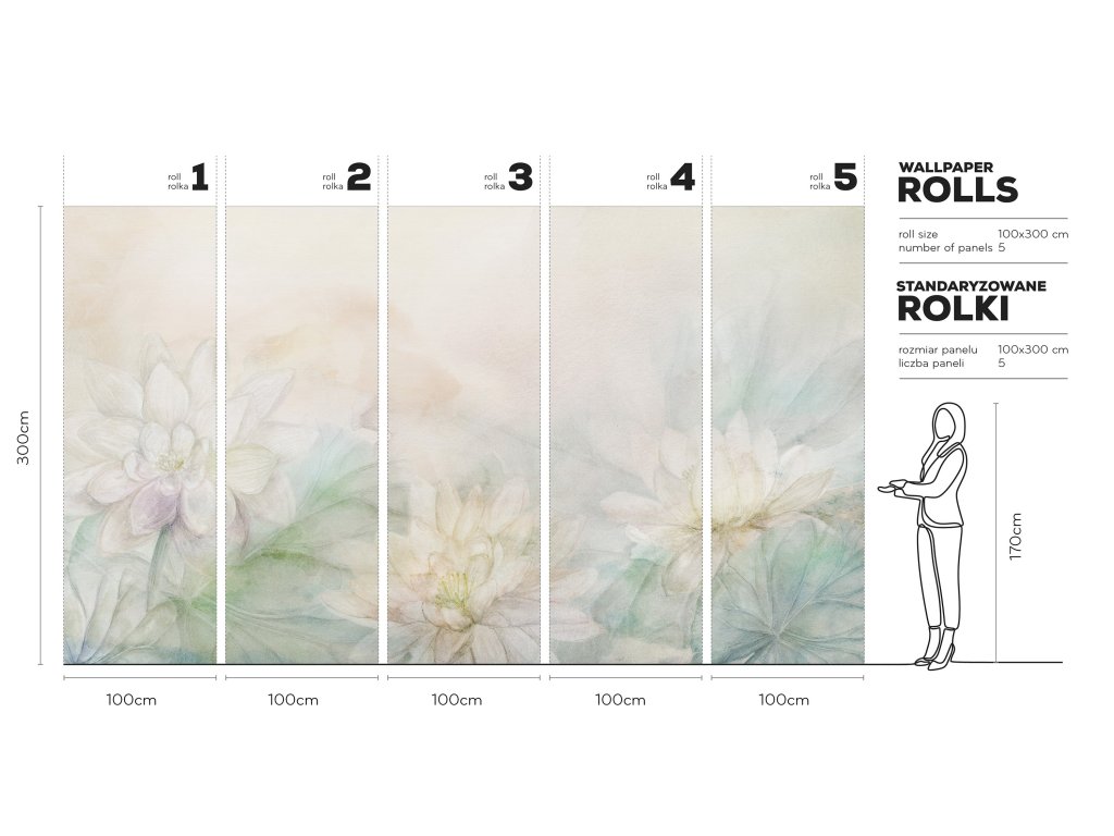 Tapeta je připravena na tupý spoj. Aplikace je rychlá, jednoduchá, s lepidlem na tapety, lepidlo se nanáší pouze na zeď. Lepidlo není součástí balení.