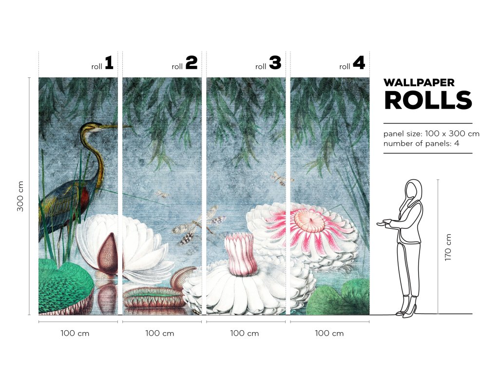 Tapeta je připravena na tupý spoj. Aplikace je rychlá, jednoduchá, s lepidlem na tapety, lepidlo se nanáší pouze na zeď. Lepidlo není součástí balení.