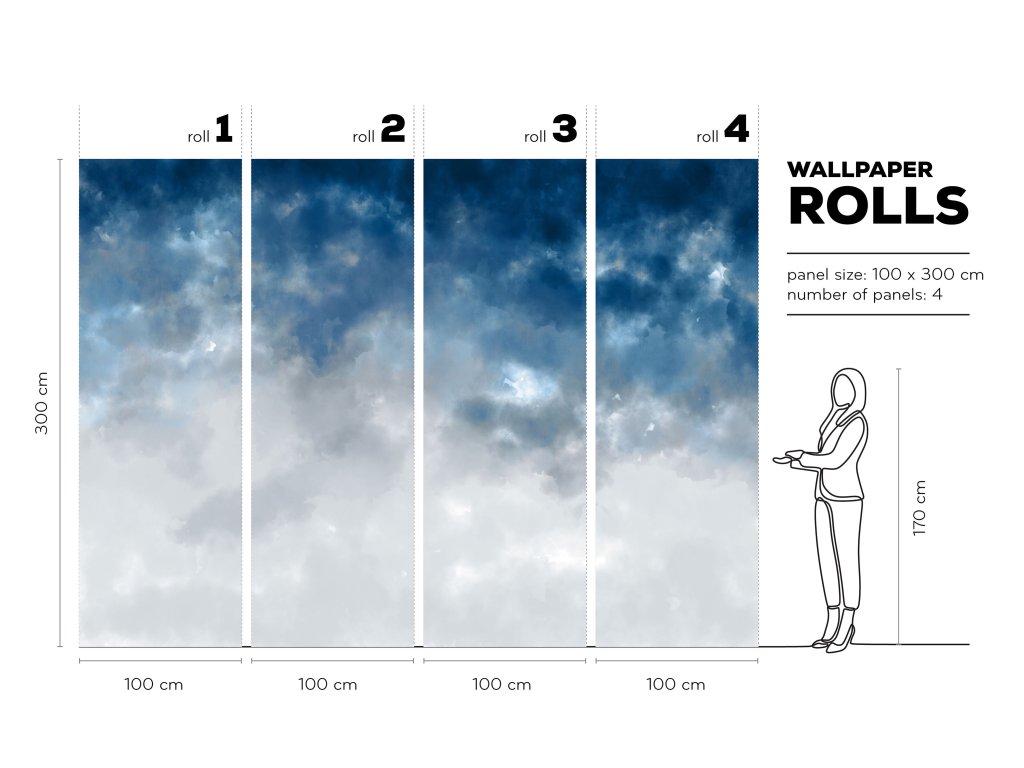 Tapeta Watercolor Ombre Blue & Grey na míru