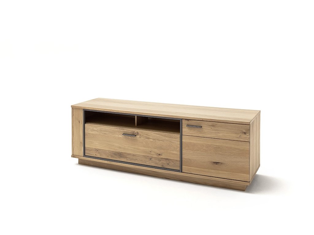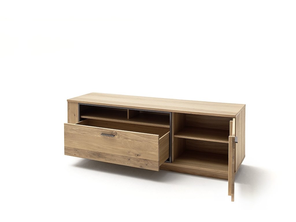 Designový TV stolek z dubu bianco a kovovou antracitovou konstrukcí. Stolek rovněž nabízí zásuvku, skříňku a prostoru pro setobox. Designový jídelní rozkládací stůl v dubovém masivu bianco s antracitovou MDF podnoží. Stůl je možné rozložit na 280cm. V nabídce se nacházejí i další kousky z této kolekce, stačí do vyhledávání zadat "CAMPINAS" pro jejich zobrazení.