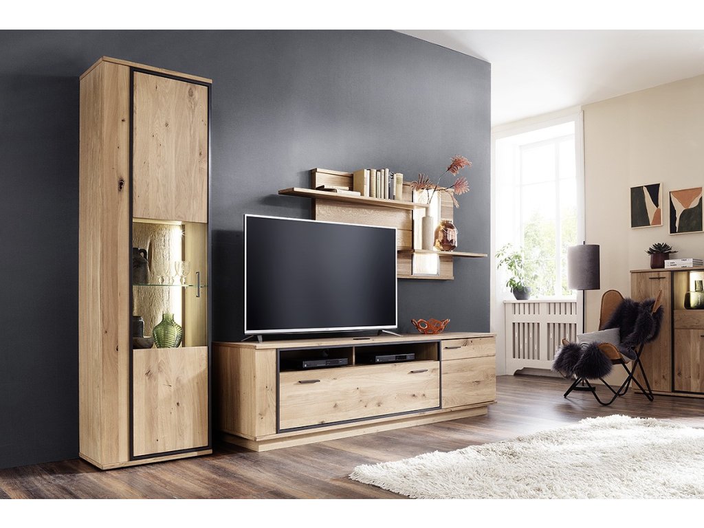 Designový TV stolek z dubu bianco a kovovou antracitovou konstrukcí. Stolek rovněž nabízí zásuvku, skříňku a prostoru pro setobox. Designový jídelní rozkládací stůl v dubovém masivu bianco s antracitovou MDF podnoží. Stůl je možné rozložit na 280cm. V nabídce se nacházejí i další kousky z této kolekce, stačí do vyhledávání zadat "CAMPINAS" pro jejich zobrazení.