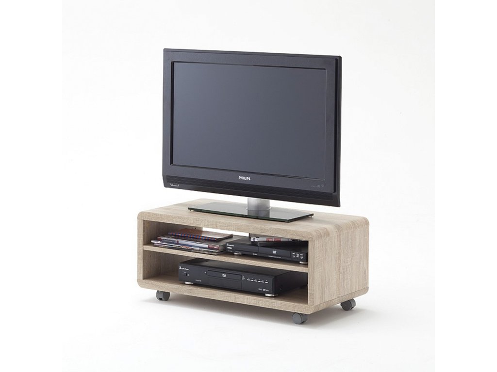 Jednoduchý ale zároveň praktický TV stolek na kolečkách v imitaci dubového dřeva. Stolek se vyrábí ve dvou velikostních variantách. Nosnosť stolku je 30kg.