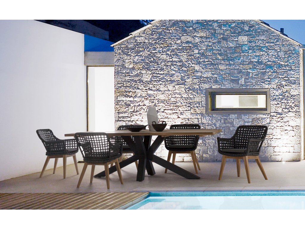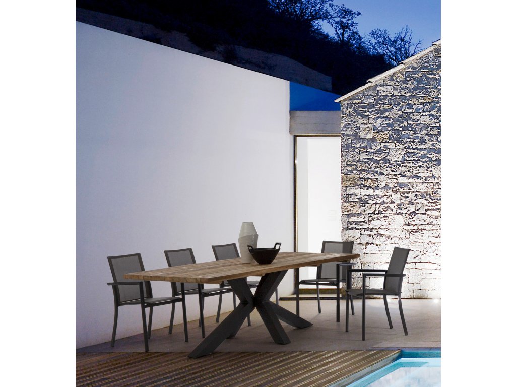 Unikátní jídelní stůl z kolekce venkovního nábytku RAMSEY. Mohutný a masivní stůl jehož deska je vyrobena z recykovaného tikového dřeva nabízí sezení až pro 10 osob. Hliníková designová podnož může být v antracitovém nebo bílém nástřiku. V nabídce se nacházejí i další kousky z této kolekce, stačí do vyhledávání zadat RAMSEY pro jejich zobrazení.