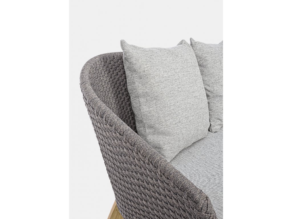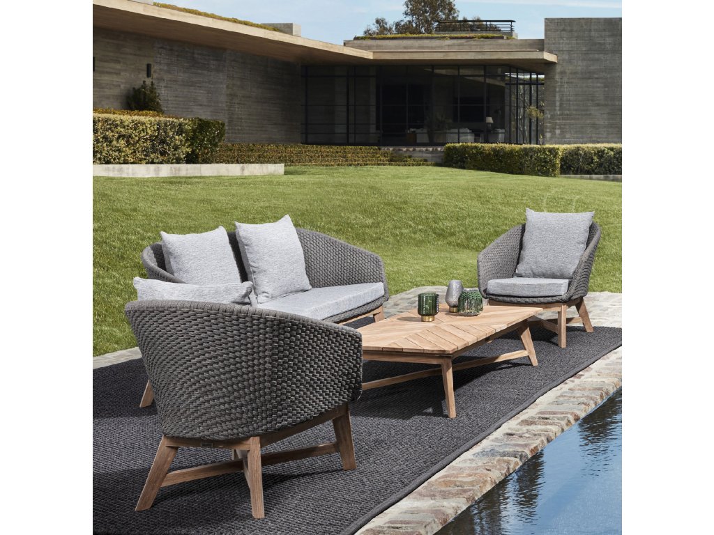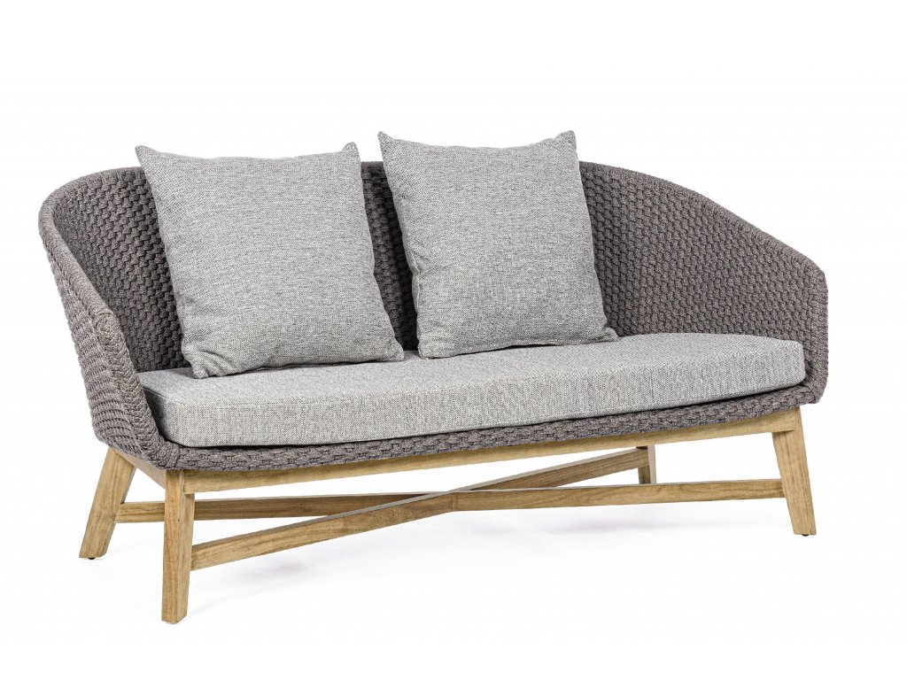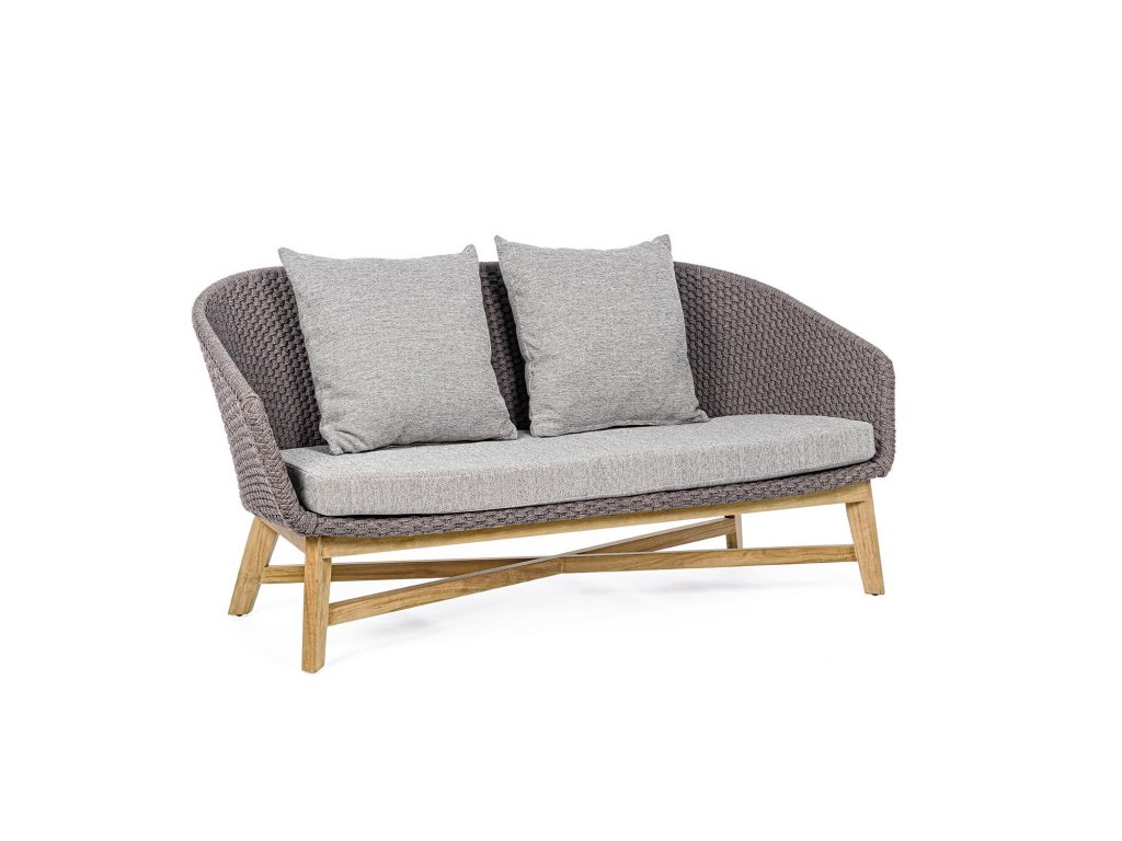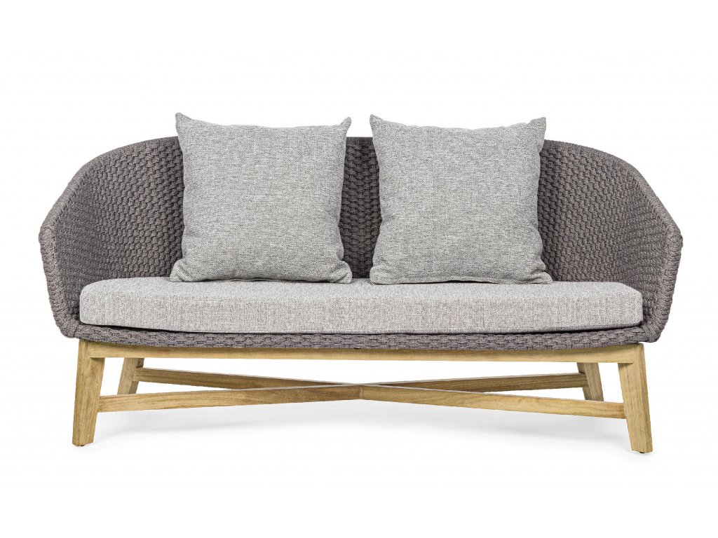 Designová dvoumístná pohovka z kolekce venkovního nábytku Coachella. Sedadlo s hliníkovým rámem a tkaním olefinových lan (100% polypropylen). Polštář sedáku je s odnímatelným potahem z olefinové tkaniny odolné vůči slunci. Nohy jsou vyrobeny z indonéského přírodního dřeva. V nabídce se nacházejí i další kousky z této kolekce, stačí do vyhledávání zadat COACHELLA pro jejich zobrazení.