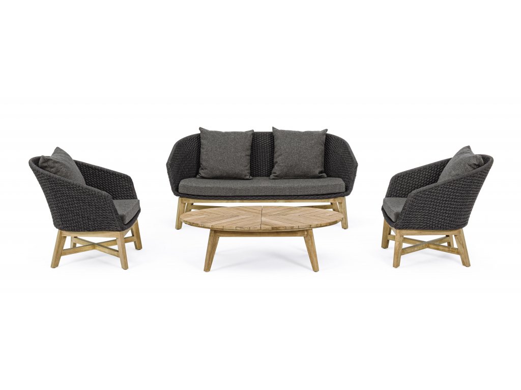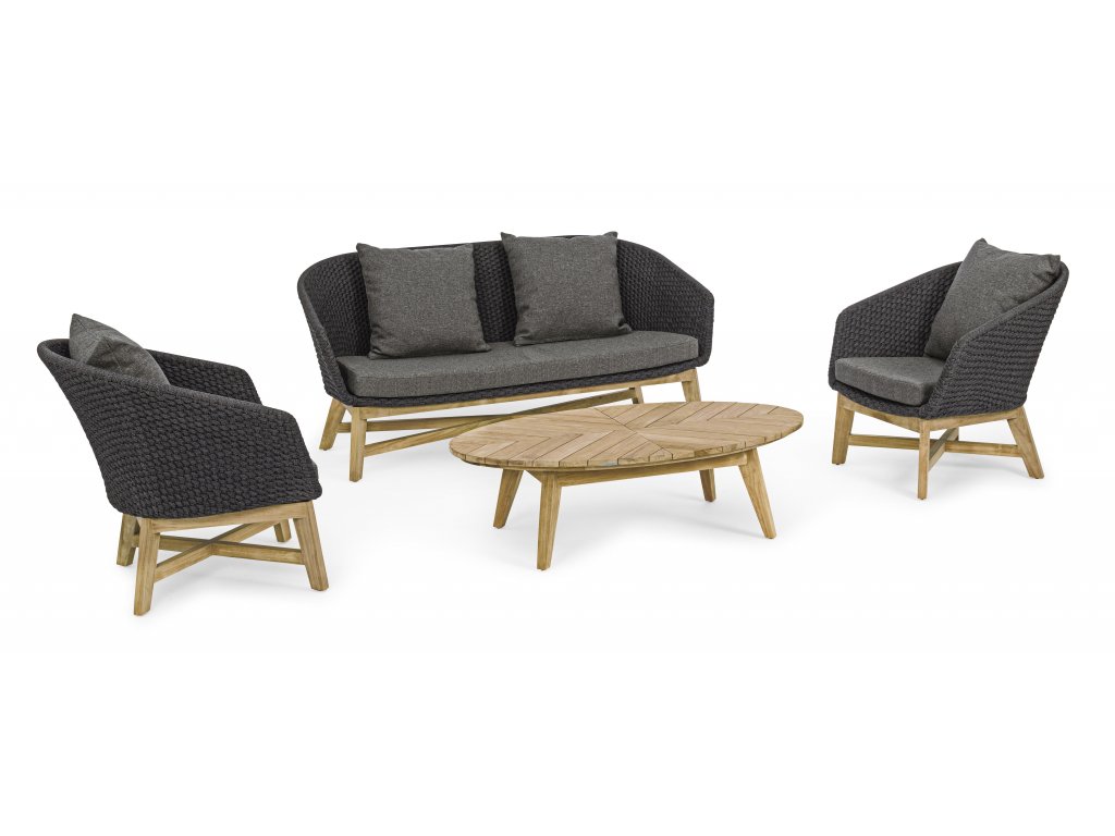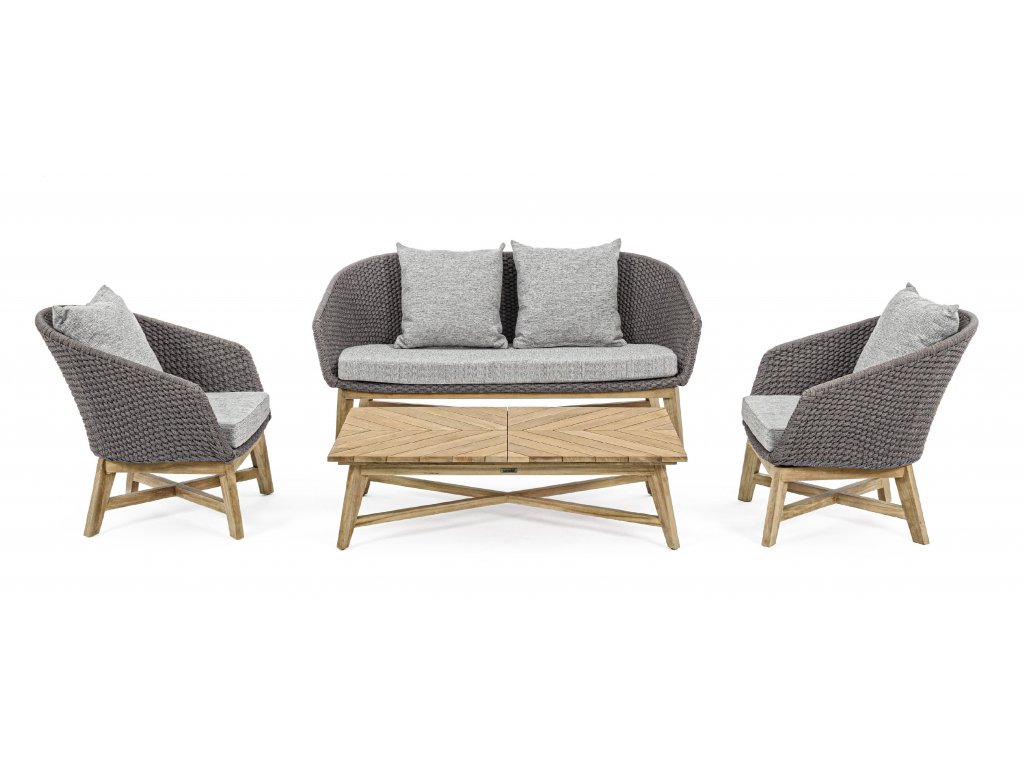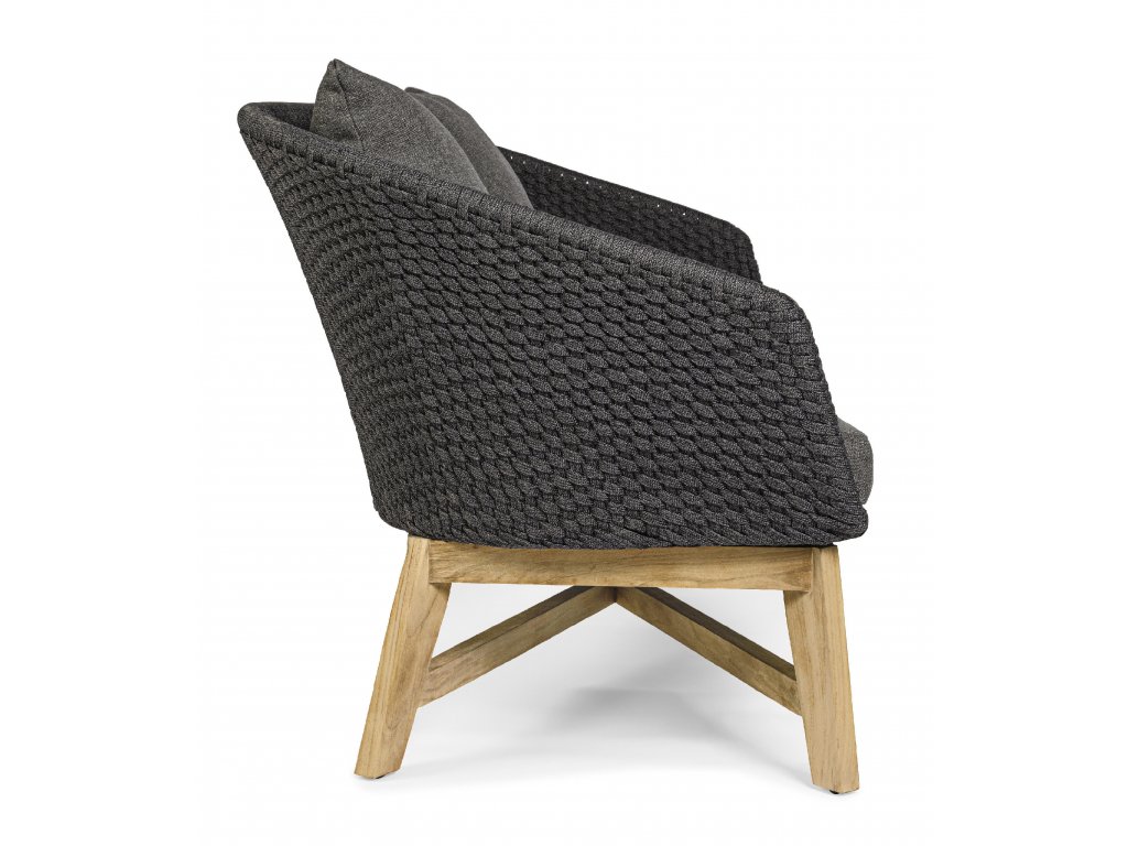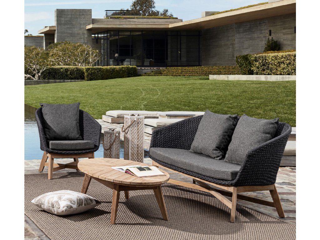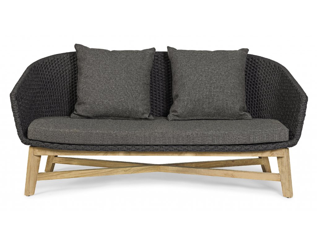 Designová dvoumístná pohovka z kolekce venkovního nábytku Coachella. Sedadlo s hliníkovým rámem a tkaním olefinových lan (100% polypropylen). Polštář sedáku je s odnímatelným potahem z olefinové tkaniny odolné vůči slunci. Nohy jsou vyrobeny z indonéského přírodního dřeva. V nabídce se nacházejí i další kousky z této kolekce, stačí do vyhledávání zadat COACHELLA pro jejich zobrazení.