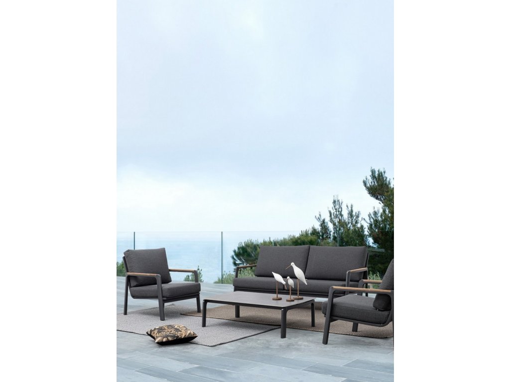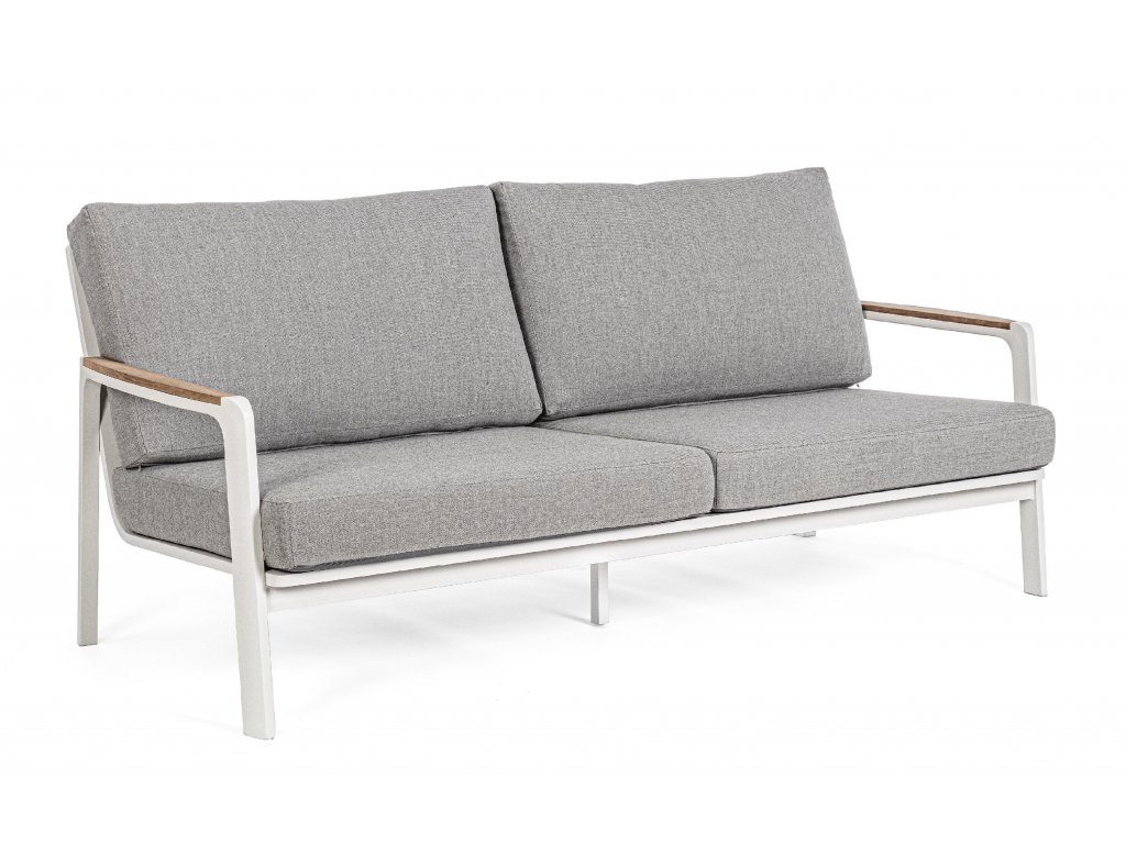 Designová a pohodlná Dvoumístná pohovka z kolekce zahradního nábytku JALISCO. Rám pohovky je vyroben z hliníku s práškovým nástřikem dostupným v barvách bílá a antracit. Područky z tikového přírodního dřeva doplňují design pohovky. Polštáře a opěradlo jsou vyplněny rychleschnoucí pěnou s odnímatelným potahem z akrylové tkaniny. V případě, že máte zájem o další produkty z této kolekce, stačí zadat do vyhledávání JALISCO.
