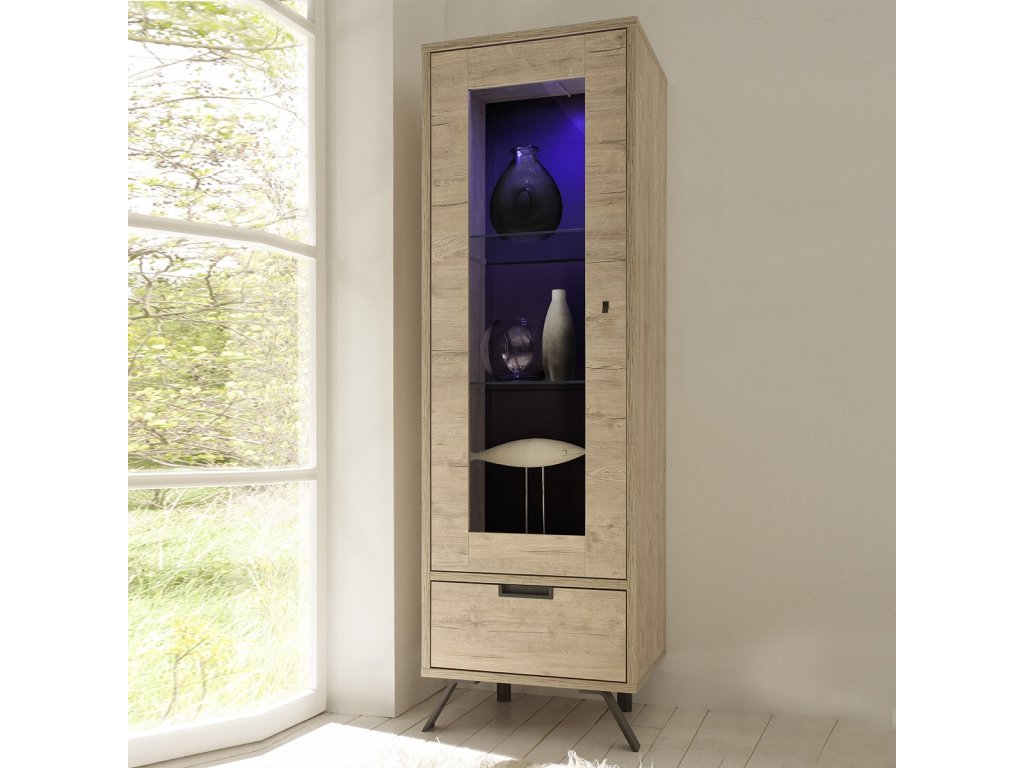 Jedinečná designová vitrína v ještě unikátnější provedení sherwood dub. Komoda disponuje policemi za skleněnými dvířky, zásuvkou na dolní straně a volitelným LED osvětlením. V nabídce se nacházejí i další kousky z této kolekce, stačí do vyhledávání zadat "PALMA" pro jejich zobrazení.