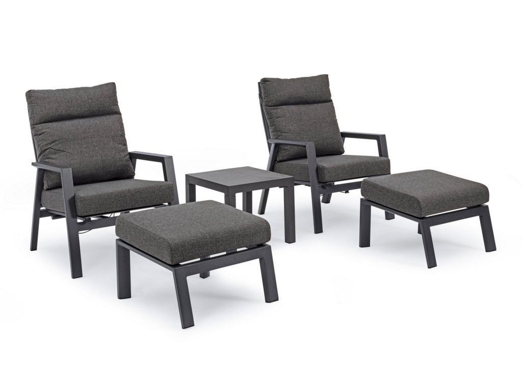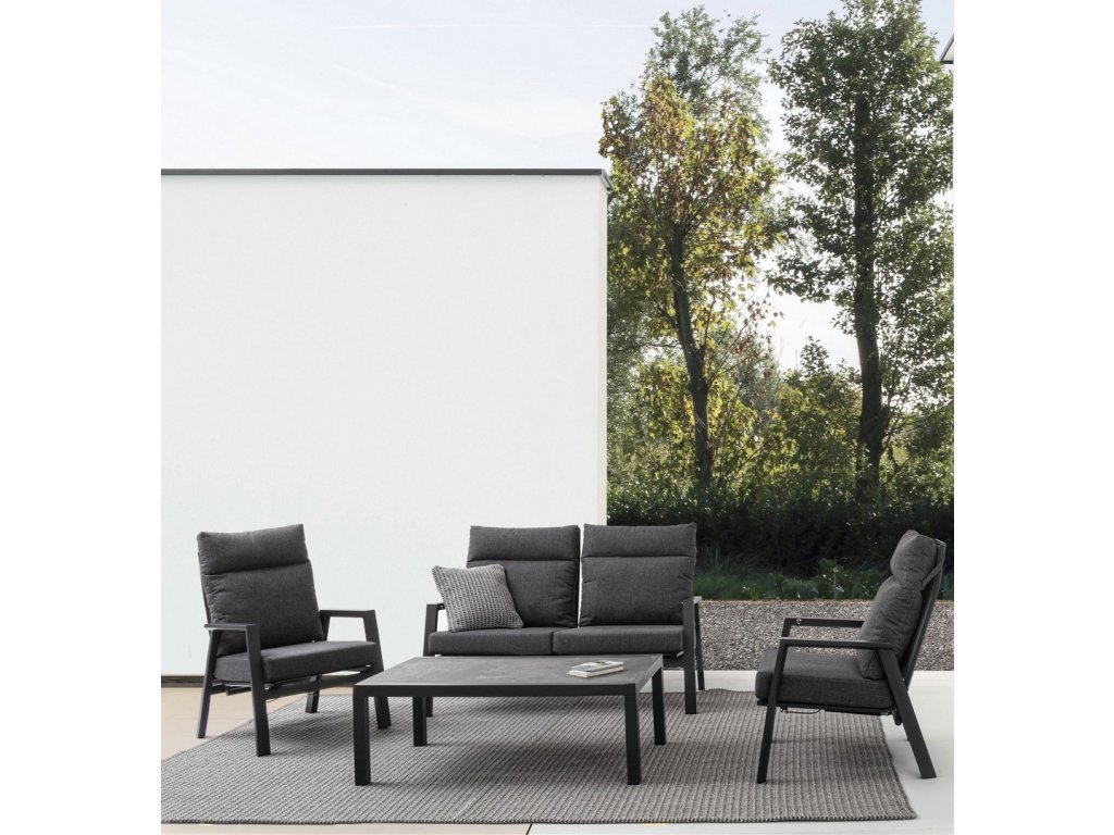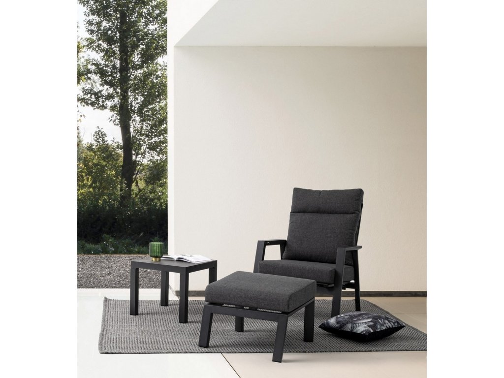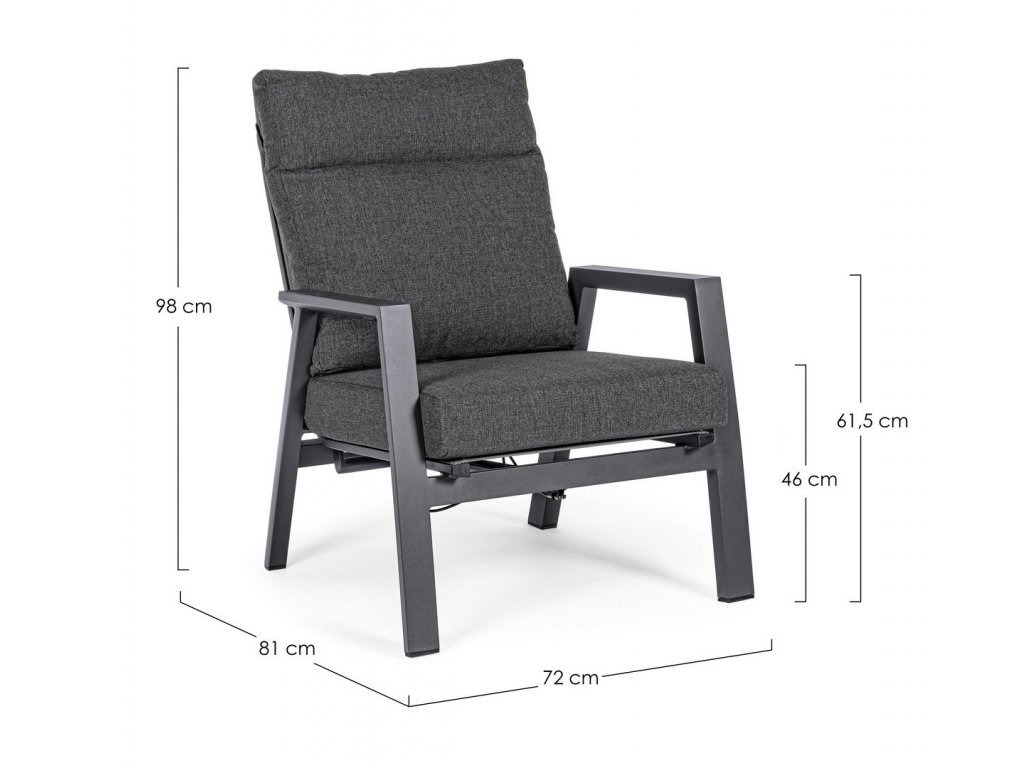Pohodlné a moderní zahradní křeslo z kolekce venkovního nábytku KLEDI. Konstrukce křesla je vyrobena z hliníku s práškovým nástřikem v antracitové barvě. Polštáře křesla jsou vyplněny rychleschnoucí pěnou potaženou potahem z olefinové tkaniny. případě zájmu o další produkty z této kolekce stačí zadat do vyhledávání KLEDI.