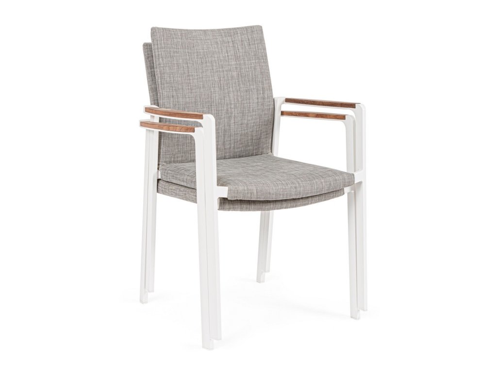 Jednoduchá a pohodlná zahradní židle z kolekce venkovního nábytku JALISCO. Židle nabízíme ve 2 barevných provedeních antracit a bílá. Rám židle je z hliníku, opěradlo a sezení z textilie 70% a 30% olefin čímž je odolné vůči vnějším vlivům. jsou vyplněny z rychleschnoucí pěny.Područky židli dodávají maximální pohodlnost sezení.