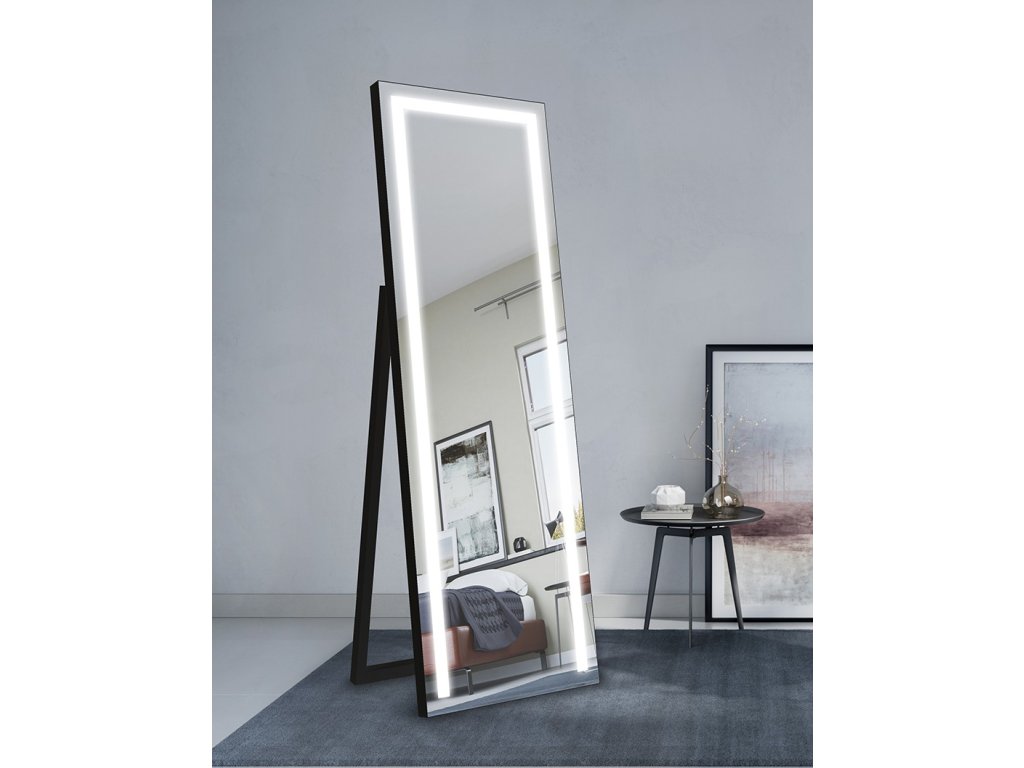 Stojící zrcadlo LED do ložnice lze umístit k toaletnímu stolku nebo do šatny. Moderní design stojícího zrcadla s LED diodami dokonale splyne se současnými aranžmá a vytváří zajímavou kompozici, která poutá pozornost.