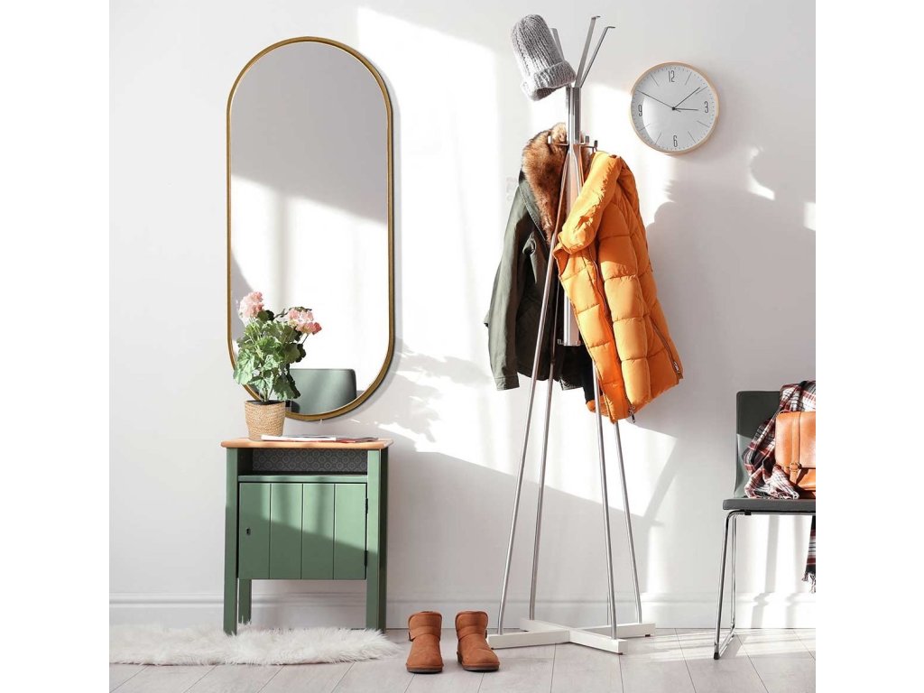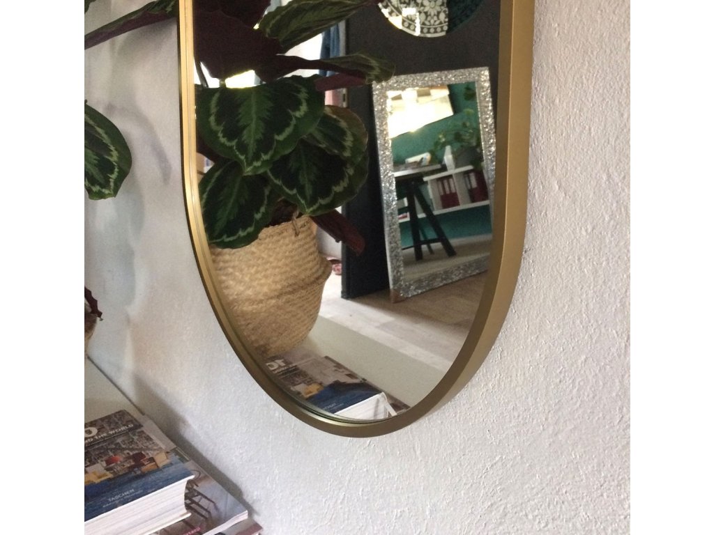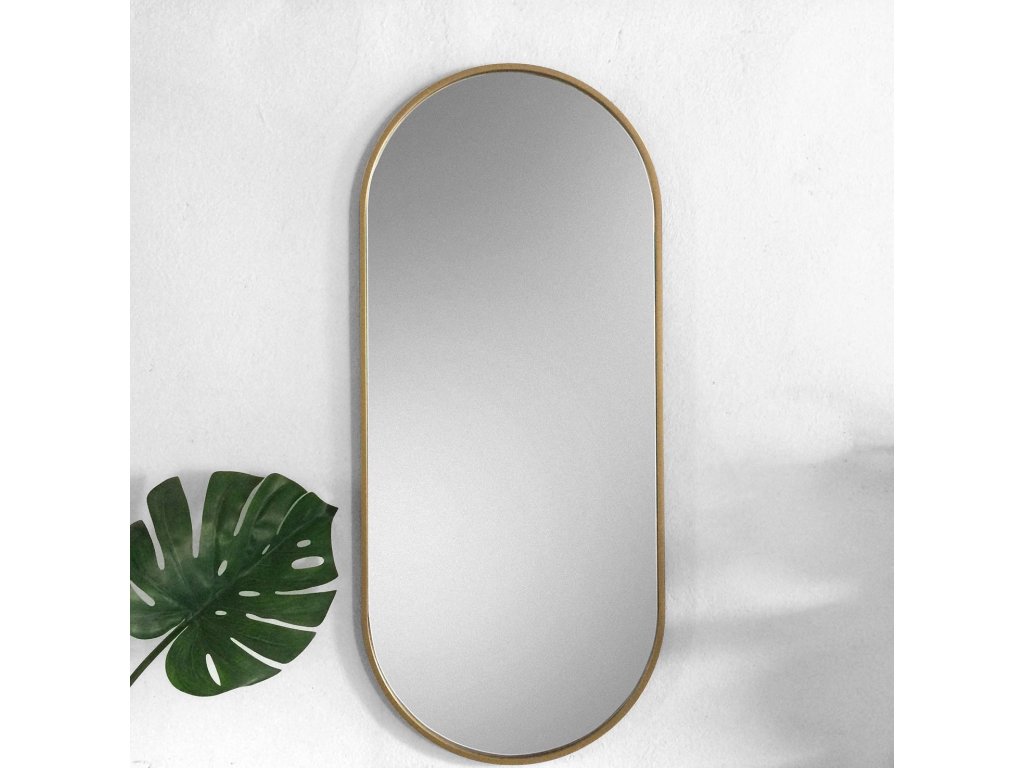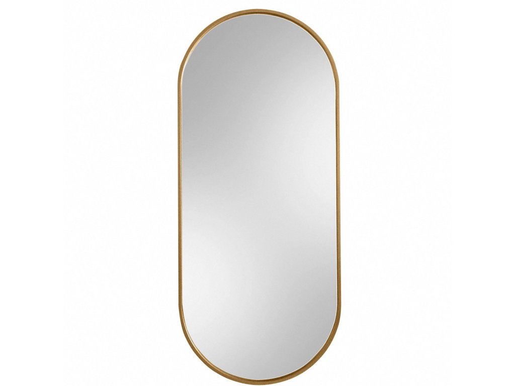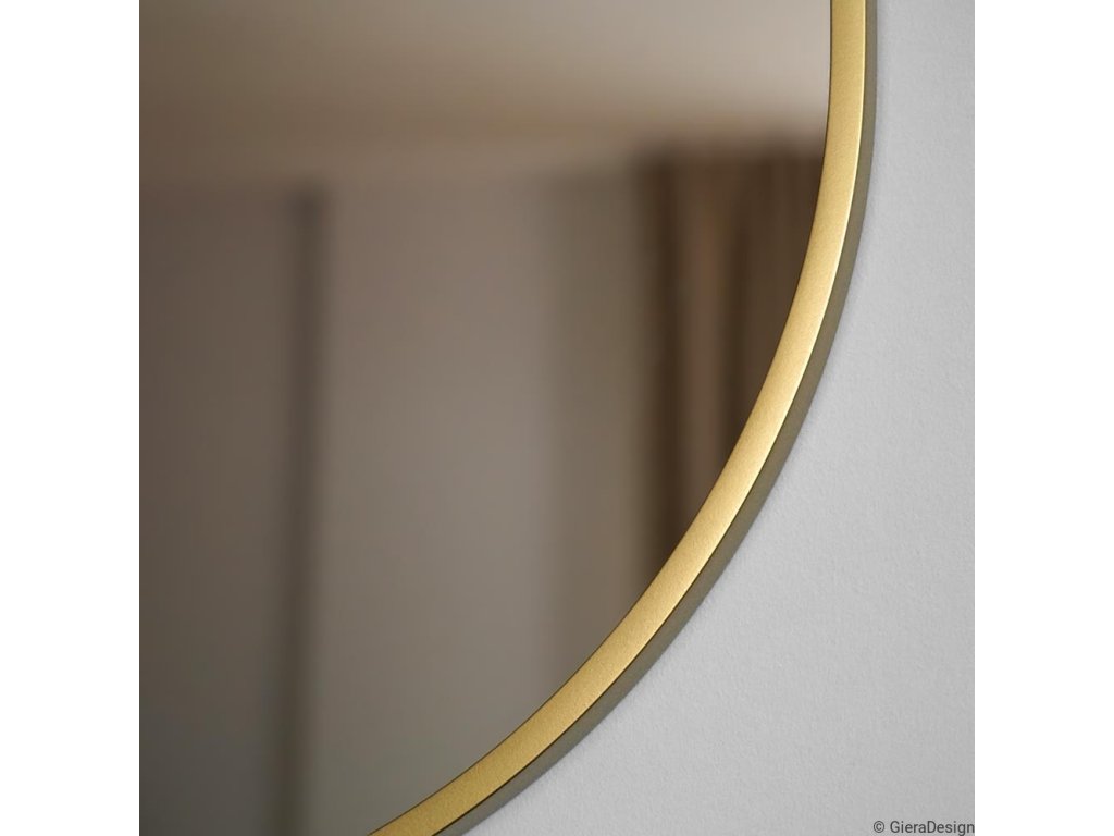 Oválné nástěnné zrcadlo ve velmi úzkém rámu ve zlaté barvě. Perfektně se hodí do interiérů v eklektickém, skandinávském nebo moderním stylu. Rám zrcadla je vyroben z voděodolné MDF lakované na zlato tvrdým dvousložkovým polyuretanovým lakem. Vysoce lesklé zrcátko s leštěnými hranami je zajištěno vrstvou teflonu, která ho chrání před korozivními účinky vlhkosti - vhodné i do koupelny. Zrcadla jsou vyrobeny z těch nejkvalitnějších belgických zrcadel s vysokou propustností a leskem. Broušení a leštění hran je prováděno na kvalitních italských strojích pro zpracování skla.Doplňkové parametry