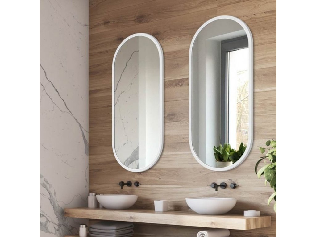 Oválné nástěnné zrcadlo s rámem v elegantní bílé barvě. Perfektně se hodí do interiérů v eklektickém, skandinávském nebo moderním stylu. Rám zrcadla je vyroben z voděodolné MDF lakované tvrdým dvousložkovým polyuretanovým lakem na bílo. Vysoce lesklé zrcátko s leštěnými hranami je zajištěno vrstvou teflonu, která ho chrání před korozivními účinky vlhkosti - vhodné i do koupelny. Zrcadla jsou vyrobeny z těch nejkvalitnějších belgických zrcadel s vysokou propustností a leskem. Broušení a leštění hran je prováděno na kvalitních italských strojích pro zpracování skla.Doplňkové parametry