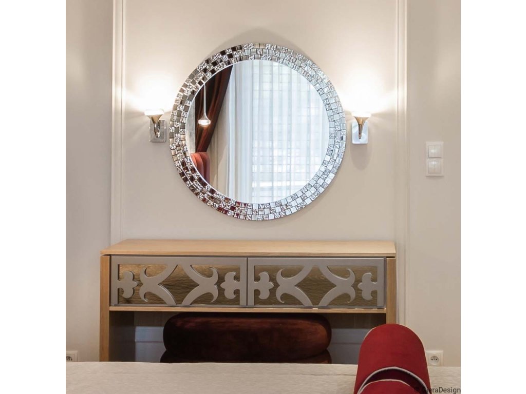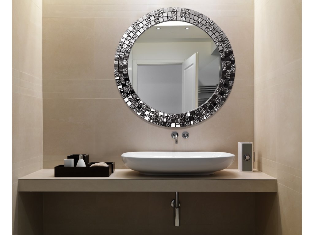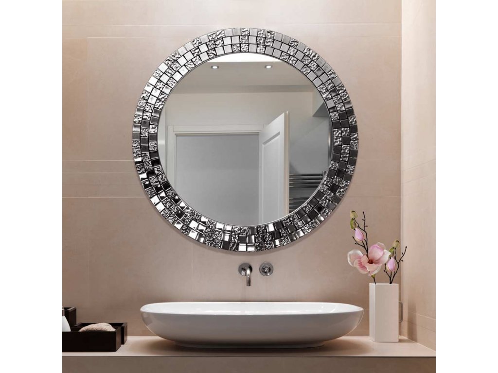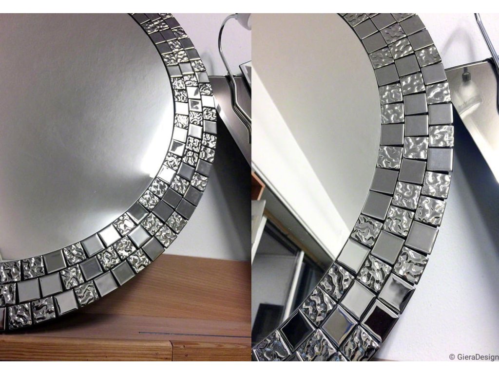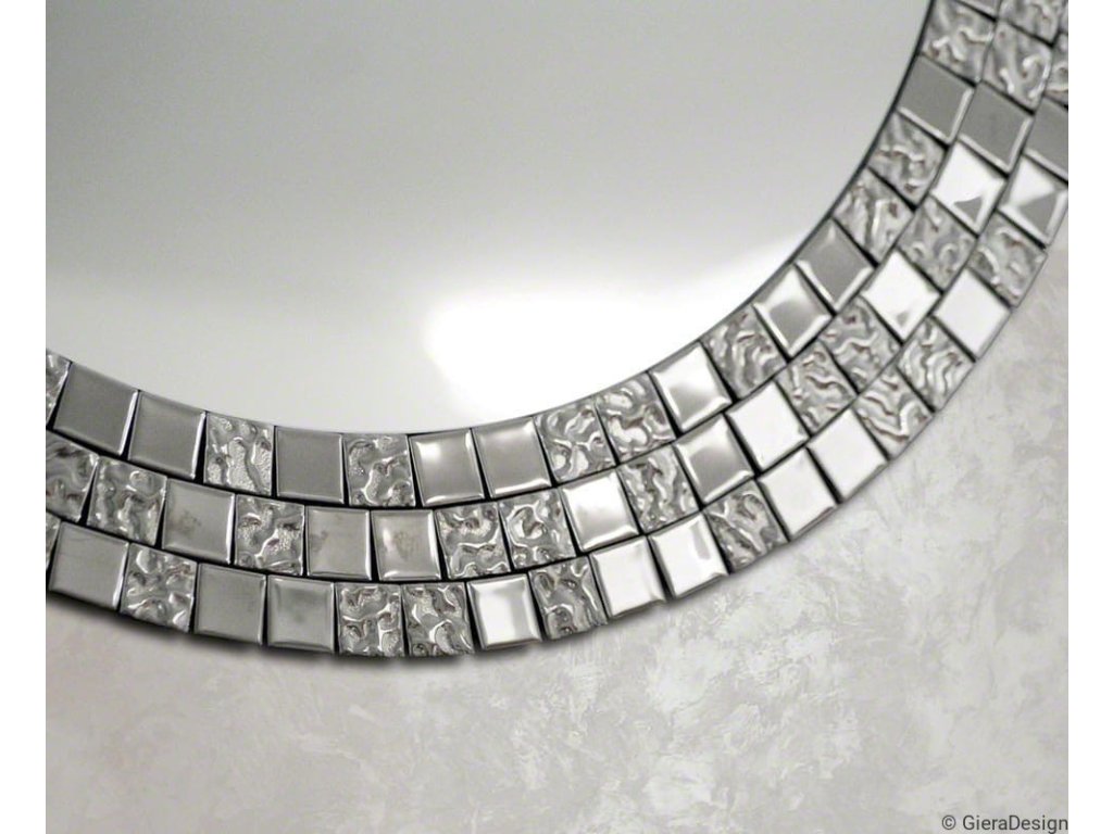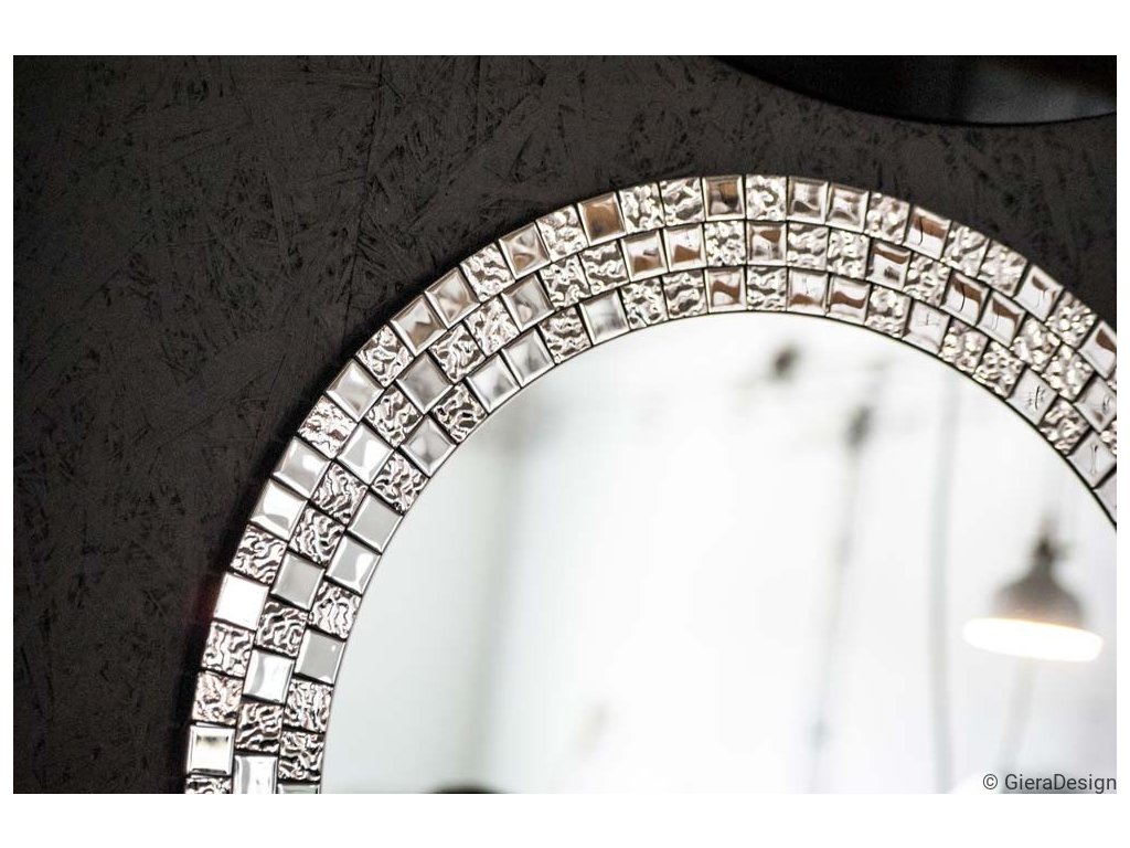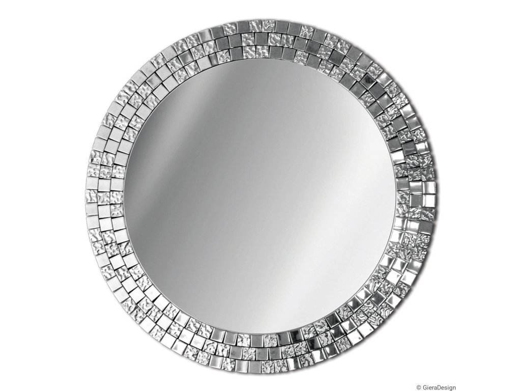 Elegantní kulaté zrcátko s přepychovým rámem, který tvoří skleněná stříbrná mozaika se výborně hodí jako dekorace do ložnice, obývacího pokoje či jídelny. Zrcadlo je zajištěno teflonem, který ho chrání před korozivním účinkům vlhkosti - vhodné i do koupelny. Zrcadlo se zhotovuje na zakázku, je možné vyrobit i jiný rozměr. Zrcadla jsou vyrobena z těch nejkvalitnějších belgických zrcadel s vysokou propustností a leskem. Broušení a leštění hran je prováděno na kvalitních italských strojích pro zpracování skla.Doplňkové parametry