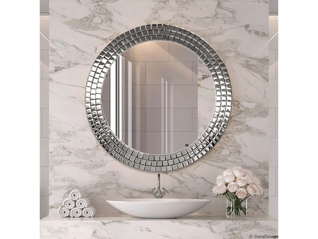 - Rám zrkadla je vyrobený z kvalitnej striebornej sklenenej mozaiky. Je do nej vlepené leštené zrkadlo vo vysokom lesku.