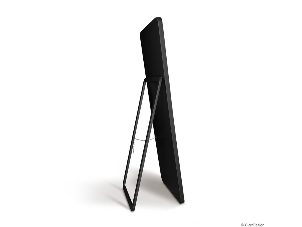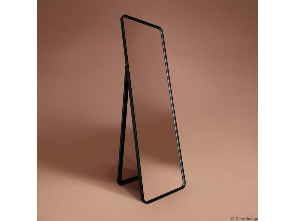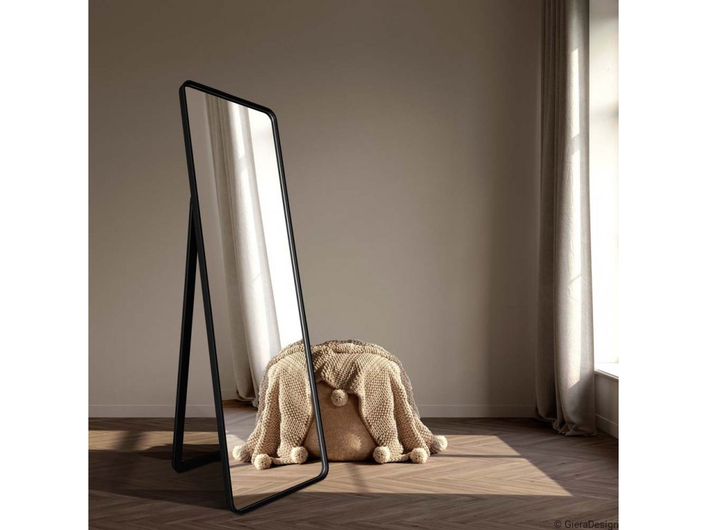 Krásné stojící zrcadlo se zaoblenými rohy v tenkém černém matném rámu. Univerzální model, který se hodí do interiérů ve skandinávském, moderním a eklektickém stylu. Zaoblené rohy zrcadla vnášejí do místnosti klid a harmonii, takže model je ideální také jako dekorace do ložnice. Umístěný na chodbě naruší rovné linie a dodá interiéru jemný nádech.