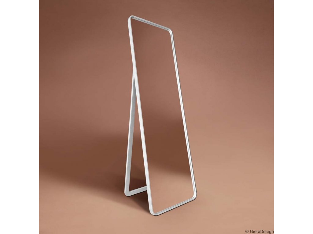 Krásné stojící zrcadlo se zaoblenými rohy v tenkém bílém matném rámu. Univerzální model, který se hodí do interiérů ve skandinávském, moderním a eklektickém stylu. Zaoblené rohy zrcadla vnášejí do místnosti klid a harmonii, takže model je ideální také jako dekorace do ložnice. Umístěný na chodbě naruší rovné linie a dodá interiéru jemný nádech.
