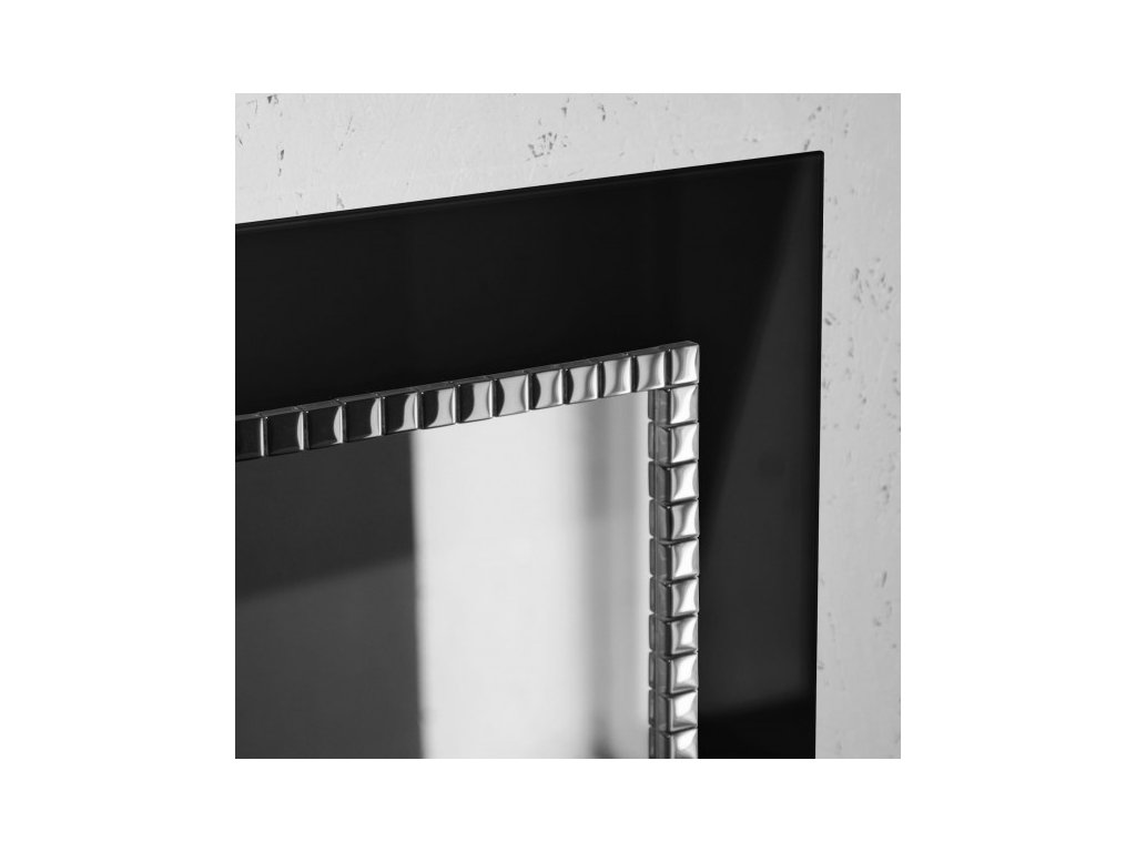 Obdélníkové koupelnové zrcadlo v černém rámu zdobené stříbrnou mozaikou. Elegantní kombinace černé a stříbrné barvy perfektně zapadá do klasických interiérů a interiérů ve stylu glamour. Rám je vyroben černého skla Lacobel a jedné řady vysoce kvalitní skleněné stříbrné mozaiky (kostka 15 x 15 mm). V něm je nalepeno zrcadlo s vysokým leskem. Zrcadlo je zajištěno teflonem, který ho chrání před korozivním účinkem vlhkosti - vhodné do koupelny. Zbroušené a leštěné okraje zrcadla jsou samozřejmostí. Na zadní straně jsou namontovány úchyty na zavěšení, na požádání může být zrcadlo vyrobené bez nich, na lepení. Zrcadlo se zhotovuje na zakázku, je možné vyrobit i jiný rozměr. Zrcadla jsou vyrobeny z těch nejkvalitnějších belgických zrcadel s vysokou propustností a leskem. Broušení a leštění hran je prováděno na kvalitních italských strojích pro zpracování skla.Doplňkové parametry