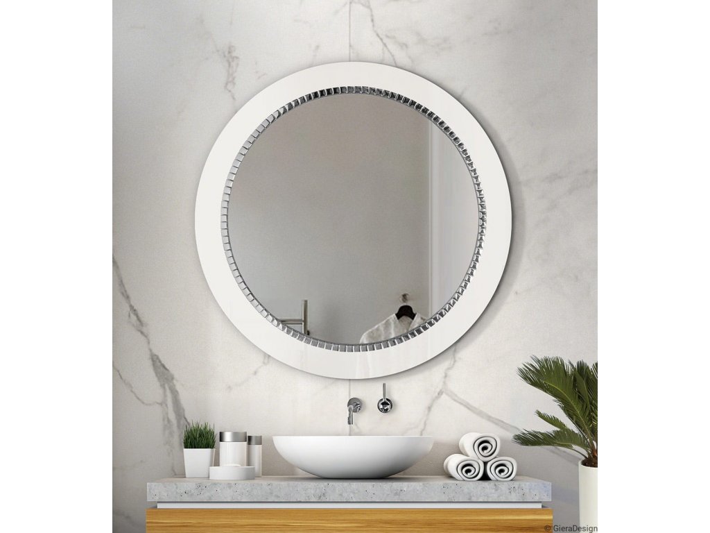 Kulaté nástěnné zrcadlo má nadčasový design, který odkazuje na styl Art Deco. Zrcadlo je zajištěno teflonem, který ho chrání před korozivním účinkem vlhkosti - vhodné i do koupelny. Novodobý kousek do moderních interiérů. Zbroušené a leštěné okraje zrcadla jsou samozřejmostí. Rám je vyroben z černého skla Lacobel a vysoce kvalitní mozaiky ze stříbrného skla (jedna kostka 15 × 15 mm). Háčky jsou namontovány na zadní straně pro vertikální nebo horizontální instalaci. Na požádání může být zrcadlo upravené bez háčků. Zrcadlo se zhotovuje na zakázku, je možné vyrobit i jiný rozměr. Zrcadla jsou vyrobeny z těch nejkvalitnějších belgických zrcadel s vysokou propustností a leskem. Broušení a leštění hran je prováděno na kvalitních italských strojích pro zpracování skla.Doplňkové parametry