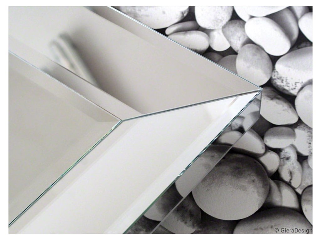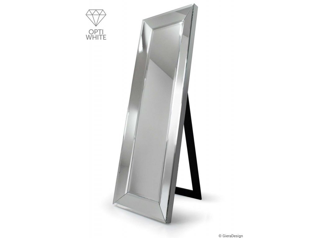 Luxusní stojící křišťálové zrcadlo v zrcadlovém rámu s jedinečným designem. Rám zrcadla s mírně skloněnými stranami krásné rozptyluje světlo a těší se z množství odrazů. Rám zrcadla je mírně zvednutý pod úhlem (o 5 cm), zrcadlo disponuje fazetou 1,5 cm. Boky zrcadla jsou zrcadlové. Zrcadlo je vyrobeno z nejkvalitnějších zrcadel Opti white . Jde o mimořádně čisté, super bílé zrcadlo s mnohem vyššími transparentností skla. Zrcadla Opti white mají nižší obsah železa, což umožňuje odstranit typické zelenkavé zabarvení skla. Zrcadla jsou téměř bezbarvé, mají mnohem vyšší propustnost světla, zajišťují věrnost barev. Mají jasnější odraz a určitě světlejší okraje.