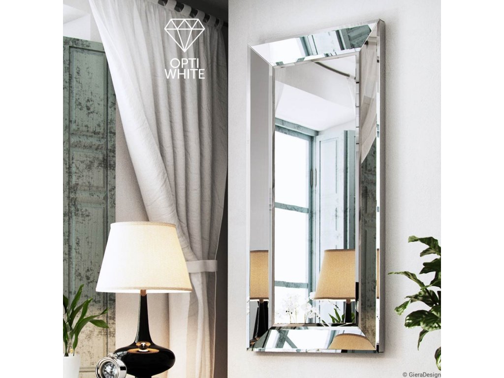 Zrcadlo je vyrobeno z nejkvalitnějších zrcadel Opti white . Jde o mimořádně čisté, super bílé zrcadlo s mnohem vyššími transparentností skla. Zrcadla Opti white mají nižší obsah železa, což umožňuje odstranit typické zelenkavé zabarvení skla.