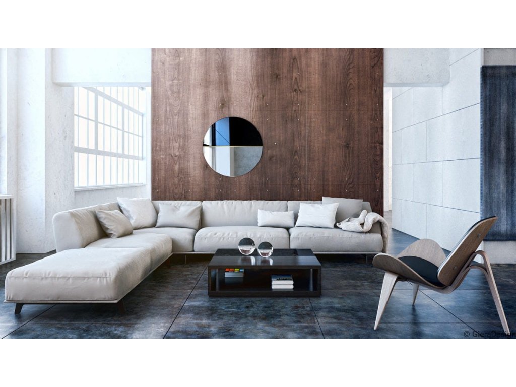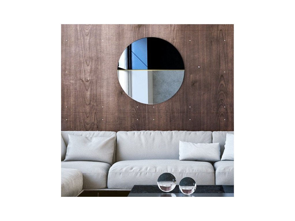 Toto dekorativní nástěnné zrcadlo je uměleckým dílem. Kulaté zrcadlo v sobě spojuje trojici různých prvků. Kombinace dvojice barev, vzorů a mosazného pásku, který rozděluje plochy zrcadla na dvě části je přímo neodolatelná. Toto kulaté zrcadlo je vyrobeno z kombinace klasického zrcadla s černým sklem Lacobel. Tyto dva prvky jsou spojeny úzkou lištou z leštěné mosazi, která dodává zrcadlu styl a eleganci. Zrcadlo se zhotovuje na zakázku, je možné vyrobit i jiný rozměr a také jsou k dispozici i další barevné kombinace. Zrcadla jsou vyrobeny z těch nejkvalitnějších belgických zrcadel s vysokou propustností a leskem. Broušení a leštění hran je prováděno na kvalitních italských strojích pro zpracování skla. Zrcadlo má věšáky na zadní straně.Doplňkové parametry