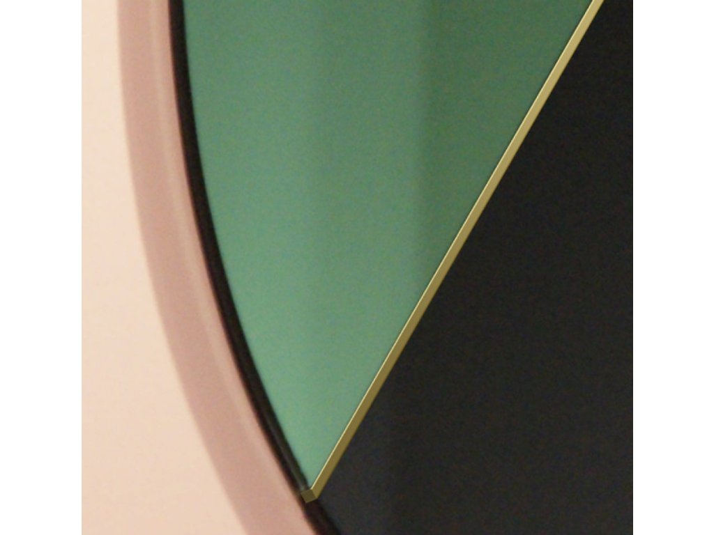 Dekorativní zrcadlo Ambar Demi je uměleckým dílem. Kulaté zrcadlo v sobě spojuje trojici různých prvků. Kombinace dvojice barev, vzorů a mosazného pásku, který rozděluje plochy zrcadla na dvě části, je přímo neodolatelná. Zrcadlo Ambar Demi kombinuje dvojici ploch. Polovinu tvoří nádherné zelené zrcadlo, druhá polovina je v černém provedení. Vynikne v obýváku nebo v předsíni.