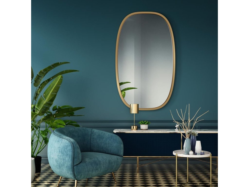 Designové oválné zrcadlo ve zlatém rámu dokonale doplňuje moderní interiéry, perfektně ladí s doplňky jako jsou kování, lampy, vázy. Tento model bude vypadat skvěle jako v koupelně, tak v ložnici, šatníku nebo obývacím pokoji. Rám je vyroben z vodotěsné MDF desky lakované tvrdým dvousložkovým polyuretanovým lakem, metalickým. Zrcadlo je dodatečně zajištěno ze zadní strany výztužnou fólií, která zvyšuje pevnost zrcadla a v případě jeho rozbití zachovává své kusy v rámu. Zrcadlo s vysokým leskem a leštěnými hranami. Na zadní straně jsou úchyty. Zrcadlo je zajištěno teflonem, který ho chrání před korozivním účinkem vlhkosti - vhodné do koupelny.