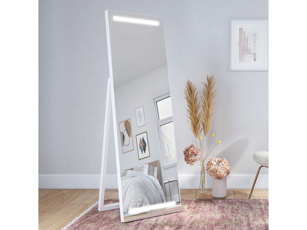Stojící zrcadlo LED do ložnice lze umístit k toaletnímu stolku nebo do šatny. Moderní design stojícího zrcadla s LED diodami dokonale splyne se současnými aranžmá a vytváří zajímavou kompozici, která poutá pozornost.