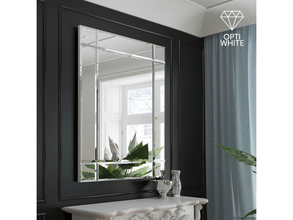 Elegantní křišťálové dekorativní zrcadlo s nadčasovým designem odkazuje na styl Art Deco. Všechny části zrcadla mají fazetu širokou 1,5 cm. Máte možnost si vybrat mezi bílou nebo černou MDF. Zrcadlo je zajištěno teflonem, který ho chrání před korozivním účinkům vlhkosti - vhodné i do koupelny. Je možné ho zavěsit vertikálně i horizontálně. Zrcadlo je vyrobeno z nejkvalitnějších zrcadel Opti white. Jde o mimořádně čisté, super bílé zrcadlo s mnohem vyšší transparentností skla. Zrcadla Opti white mají nižší obsah železa, což umožňuje odstranit typické zelenkavé zabarvení skla. Zrcadla jsou téměř bezbarvé, mají mnohem vyšší propustnost světla, zajišťují věrnost barev. Mají jasnější odraz a určitě světlejší okraje. Zrcadlo se zhotovuje na zakázku, je možné vyrobit i jiný rozměr. Zrcadla jsou vyrobena z těch nejkvalitnějších belgických zrcadel s vysokou propustností a leskem. Broušení a leštění hran je prováděno na kvalitních italských strojích pro zpracování skla.Doplňkové parametry