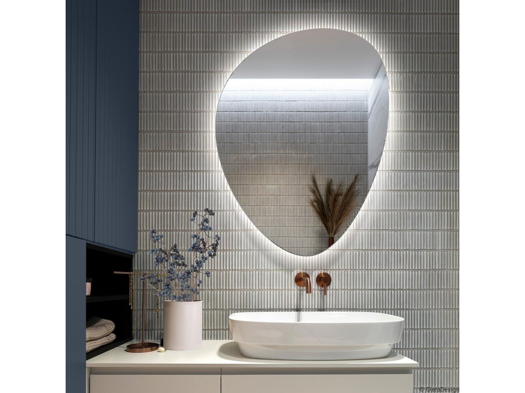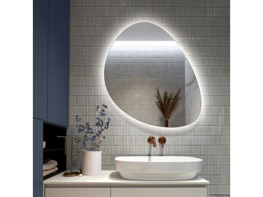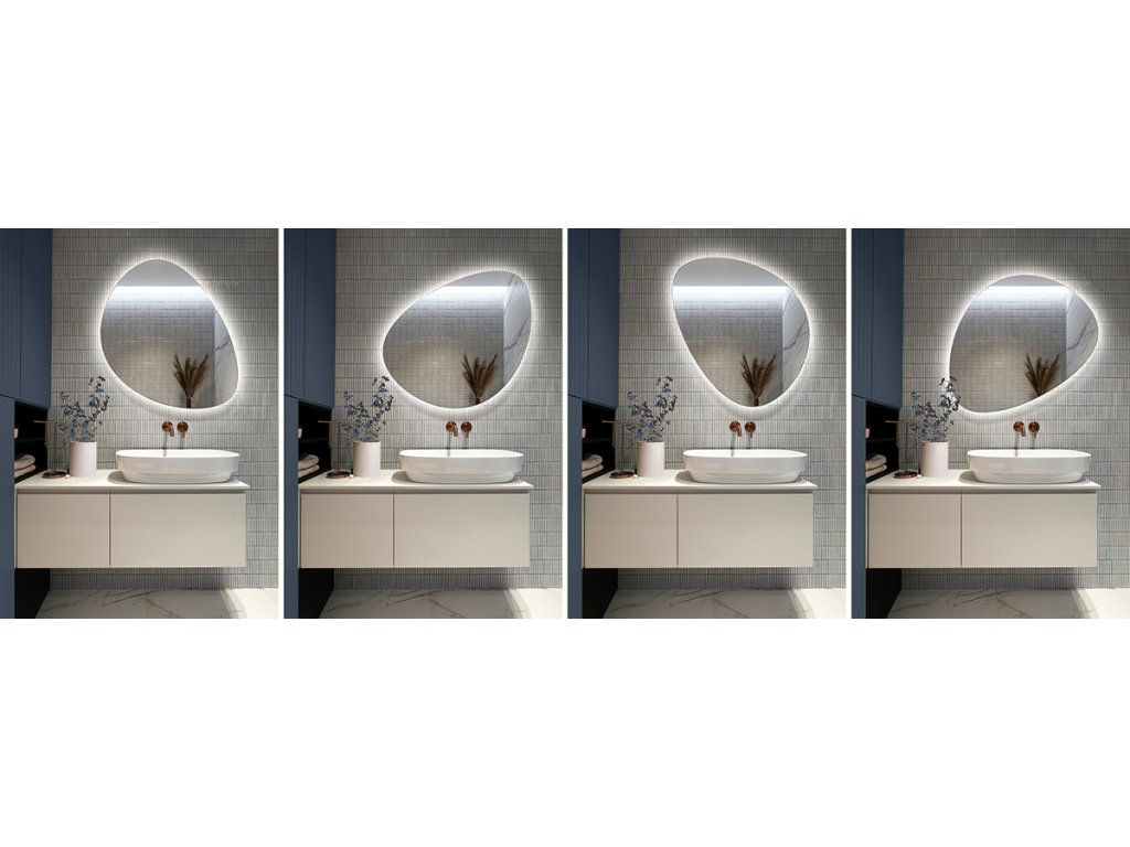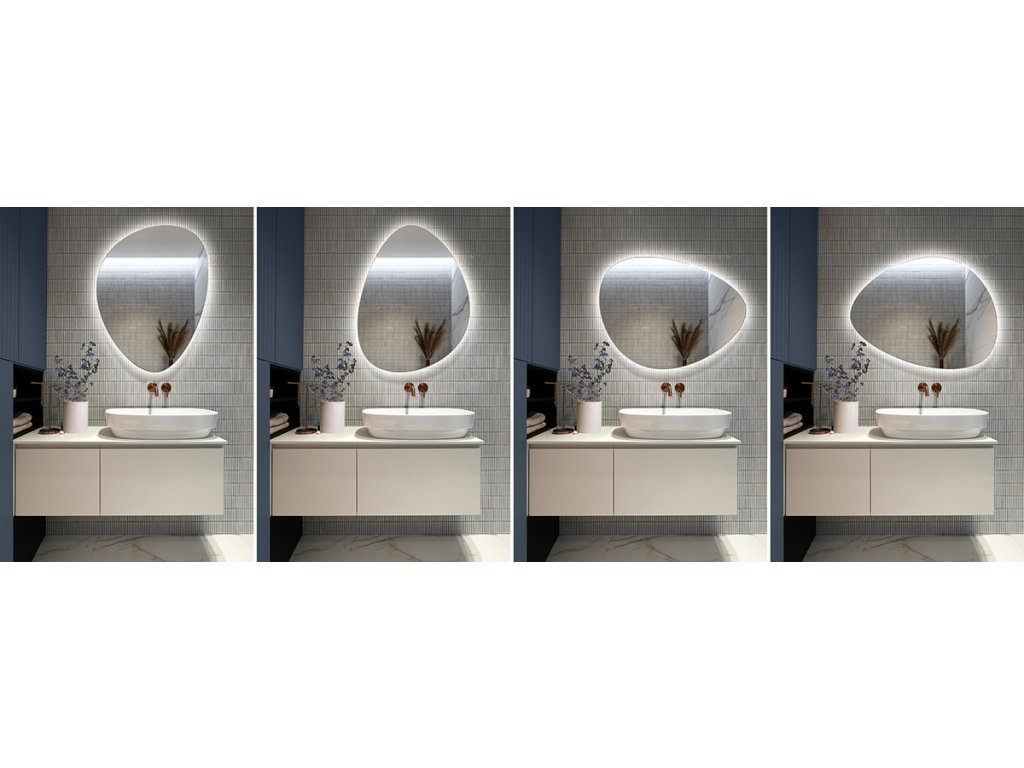 Elegantné podsvietené zrkadlo s nepravidelným zaobleným tvarom. Inšpirované dizajnom prvej polovice 20. storočia. Ideálne pre eklektické aj moderné interiéry. Zrkadlo je vhodné do obývačky, jedálne, spálne a je vhodné aj do kúpeľne.