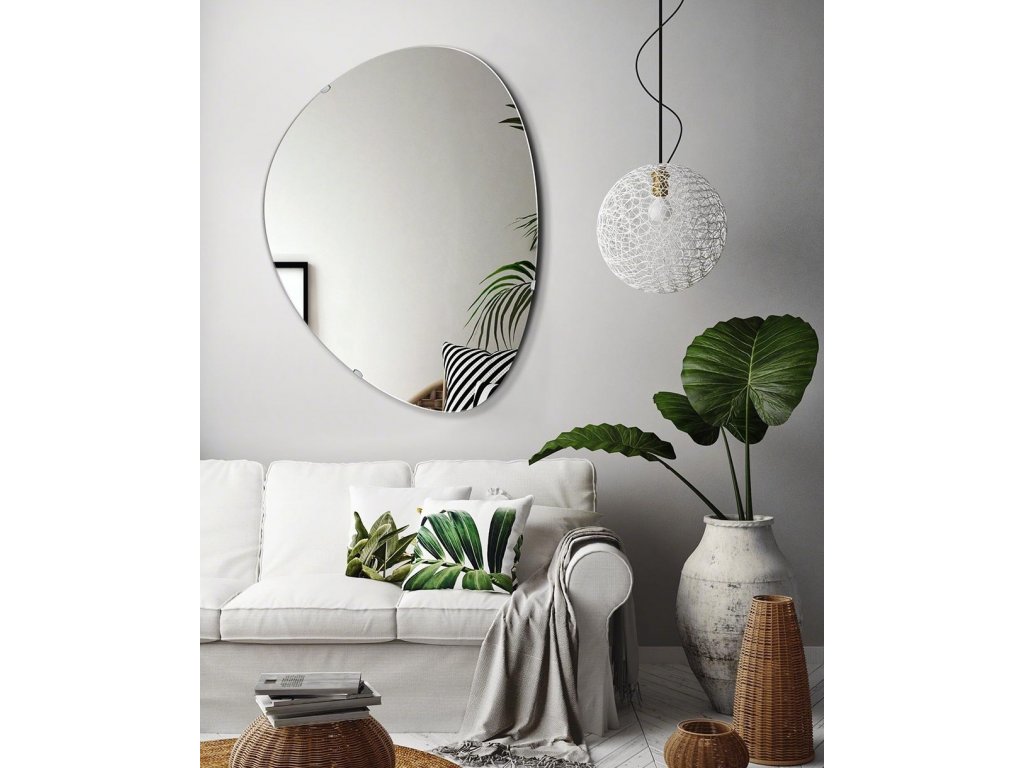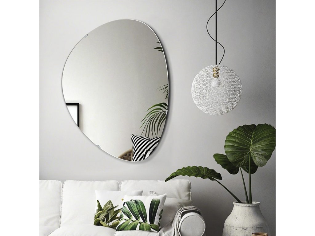 Elegantní nástěnné zrcadlo nepravidelného tvaru v moderním retro stylu z poloviny dvacátého století. Toto originální zrcadlo je ideální pro módní eklektické interiéry. Zrcadlo je vyrobeno z nejkvalitnějších zrcadel Opti white. Jde o mimořádně čisté, super bílé zrcadlo s mnohem vyšší transparentností skla. Zrcadla Opti white mají nižší obsah železa, což umožňuje odstranit typické zelenkavé zabarvení skla. Zrcadla jsou téměř bezbarvé, mají mnohem vyšší propustnost světla, zajišťují věrnost barev. Mají jasnější odraz a určitě světlejší okraje. Je zajištěno teflonem, který ho chrání před korozivním účinkům vlhkosti - vhodné i do koupelny. Zbroušené a leštěné okraje zrcadla jsou samozřejmostí. Zrcadlo se zhotovuje na zakázku, je možné vyrobit i jiný rozměr. Zrcadla jsou vyrobena z těch nejkvalitnějších belgických zrcadel s vysokou propustností a leskem. Broušení a leštění hran je prováděno na kvalitních italských strojích pro zpracování skla.Doplňkové parametry