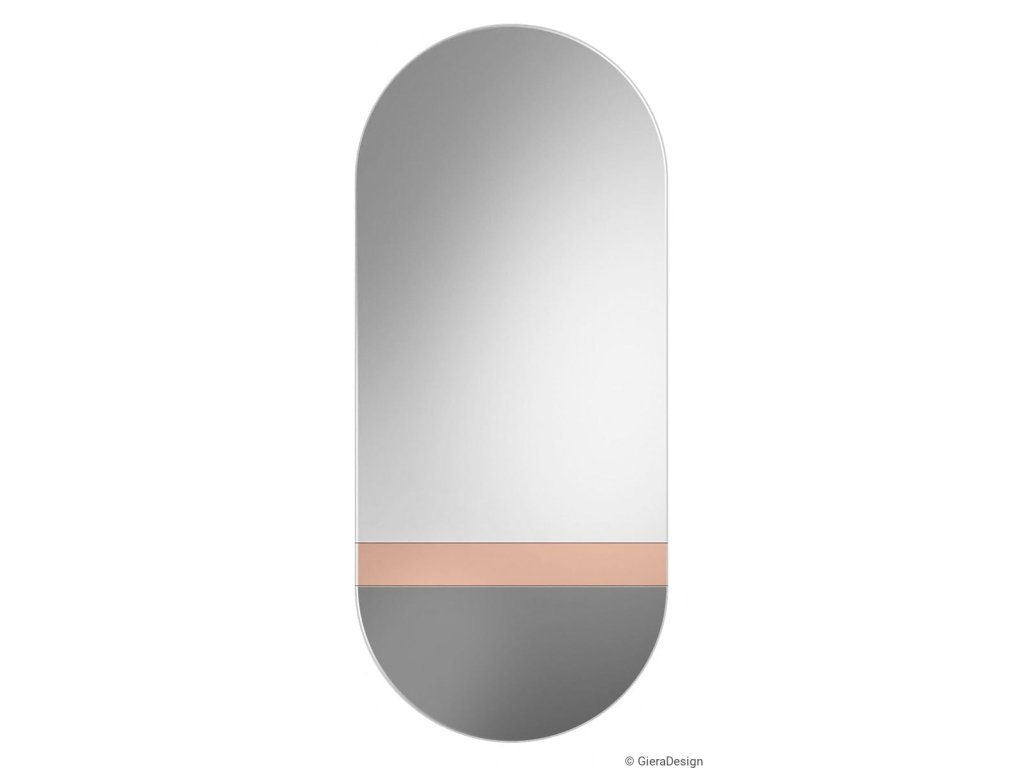 Originální zrcadlo v moderním stylu, inspirované grafikou 60. let, ozdobí moderní obývací pokoj, ložnici nebo předsíň jako umělecké dílo. Toto oválné zrcadlo je krásnou ozdobou moderního interiéru, je vynikající také pro moderní eklektické interiéry. Zrcadlo je kombinací tří různých prvků. Největší část tvoří zrcadlová plocha nejvyšší jakosti. Následuje proužek v různé barvě. Poslední část zrcadla zpestřuje plocha v grafitové barvě.