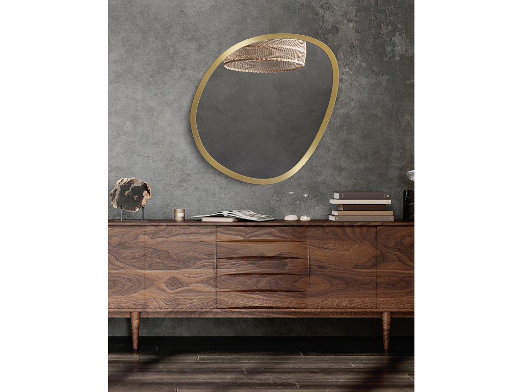 Zrcadlová tabule je umístěna v tenkém rámu, který může být vyroben z dvojitě olejované překližky z tvrdého dřeva nebo voděodolné MDF desky lakované vícesložkovým lakem. Vzadu jsou věšáky. Zrcadlo je vyrobeno na objednávku.